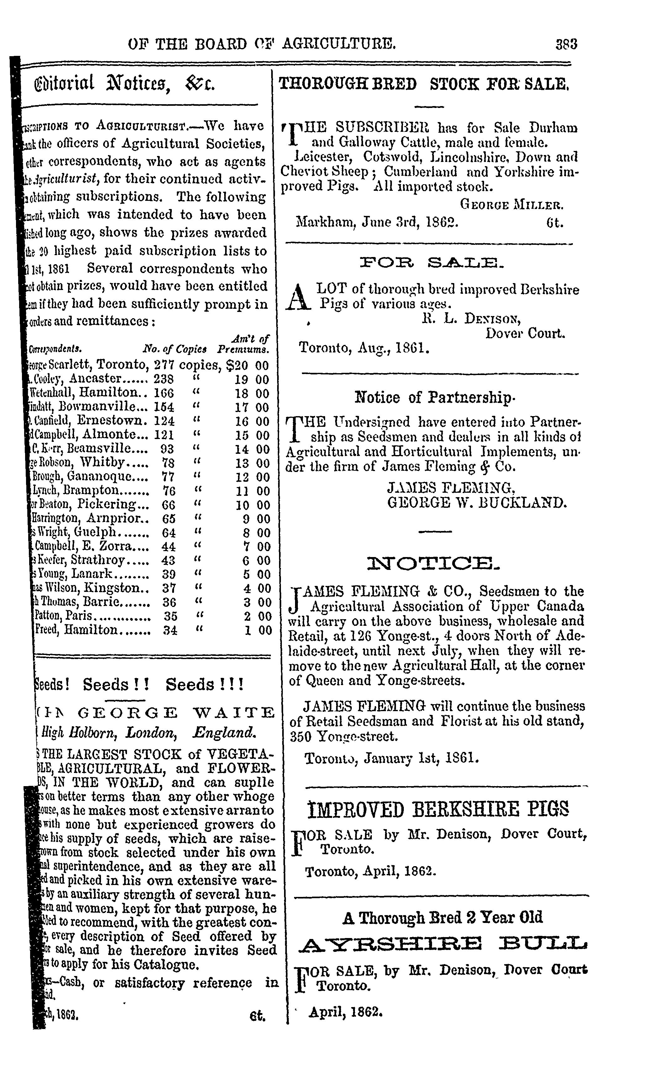 - The Canadian agriculturist, or, [Jo]urnal and transactions of the Board of Agriculture of Upper Canada : Vol. 14, no. 12 (June 16, 1862)