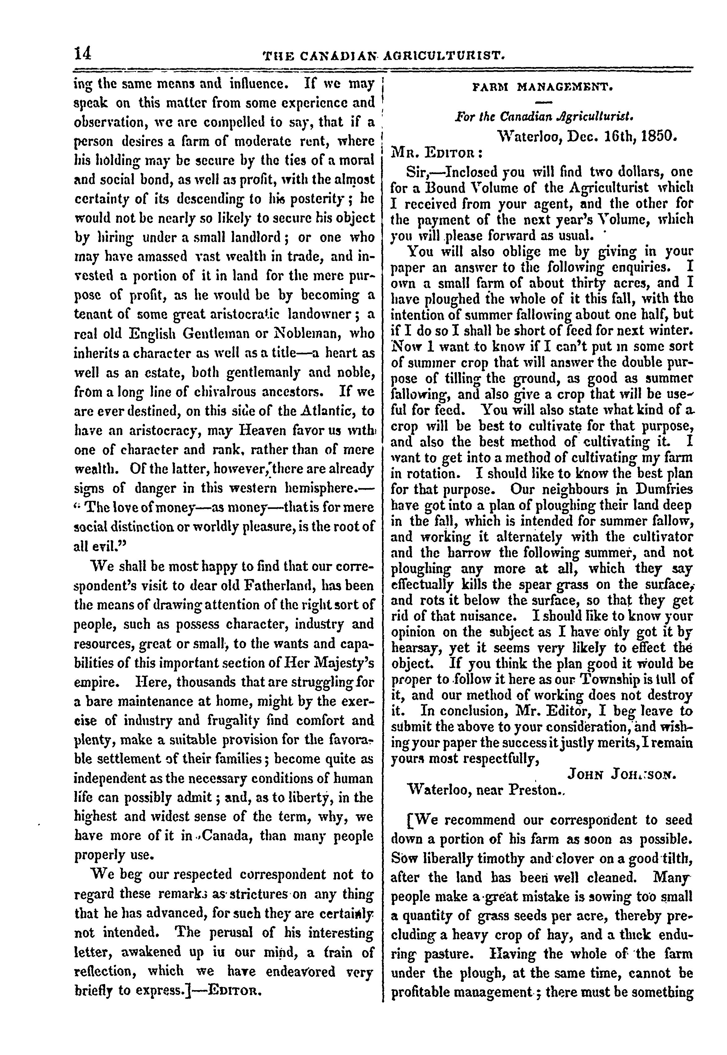 Canadian agriculturist : Canadian agriculturist : Vol. 3, no. 1 (Jan. 1851)