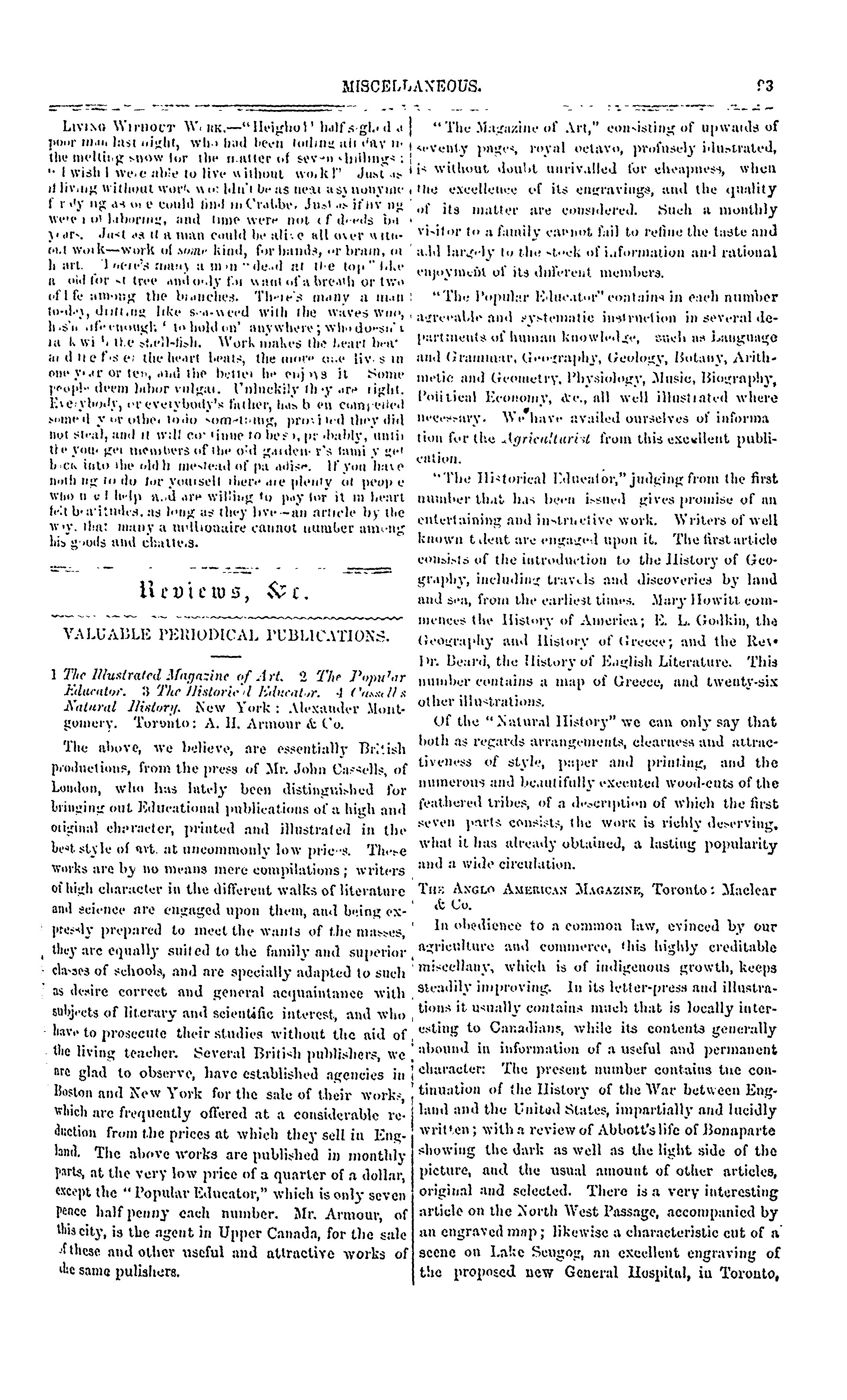 - The Canadian agriculturist and journal of transactions of the Board of Agriculture, Agricultural Association, &c : Vol. 6, no. 3 (Mar. 1854)