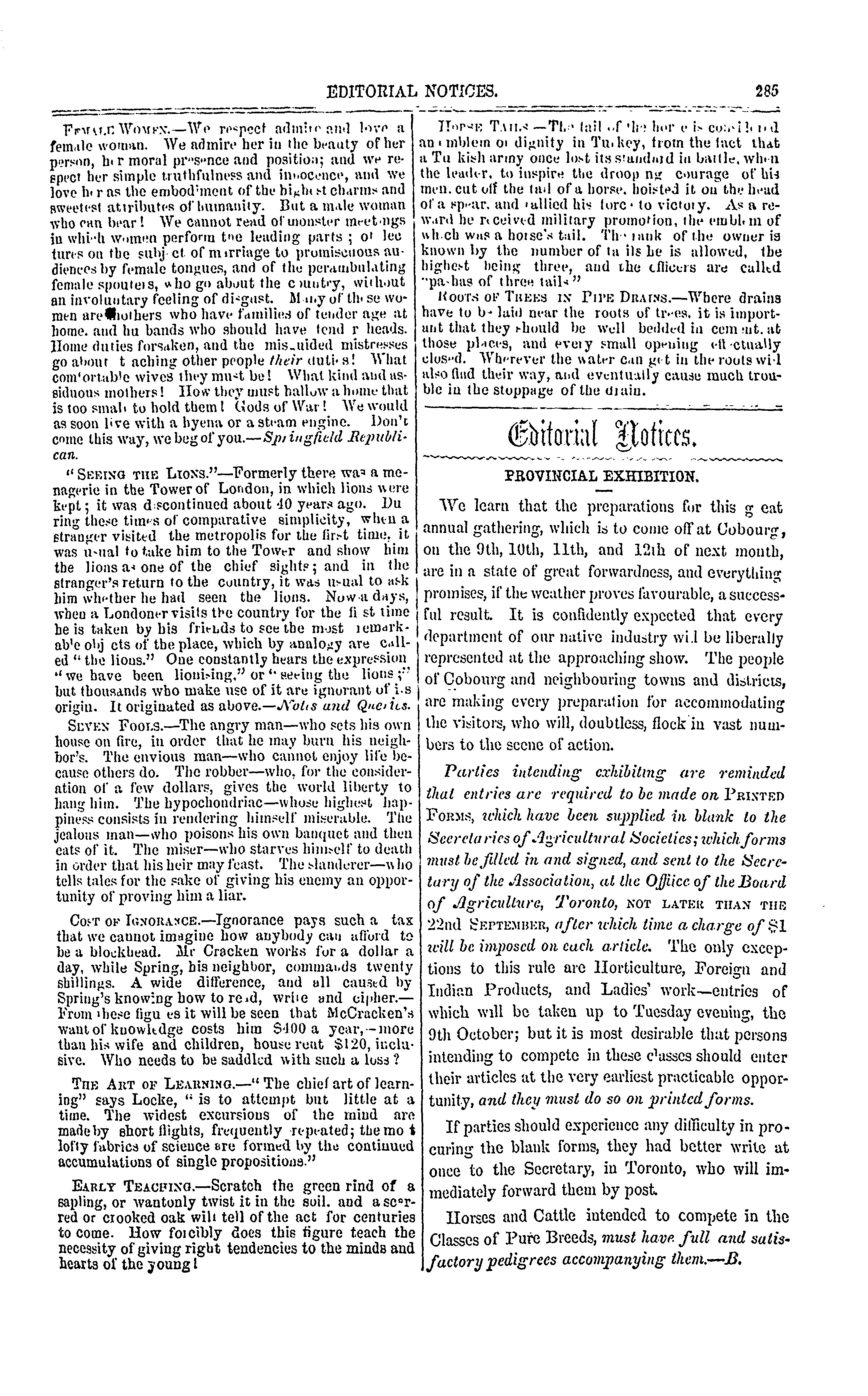 Canadian agriculturist : The Canadian agriculturist and journal of transactions of the Board of Agriculture, Agricultural Association, &c : Vol. 8 [i.e. v. 7], no. 9 (Sept. 1855)