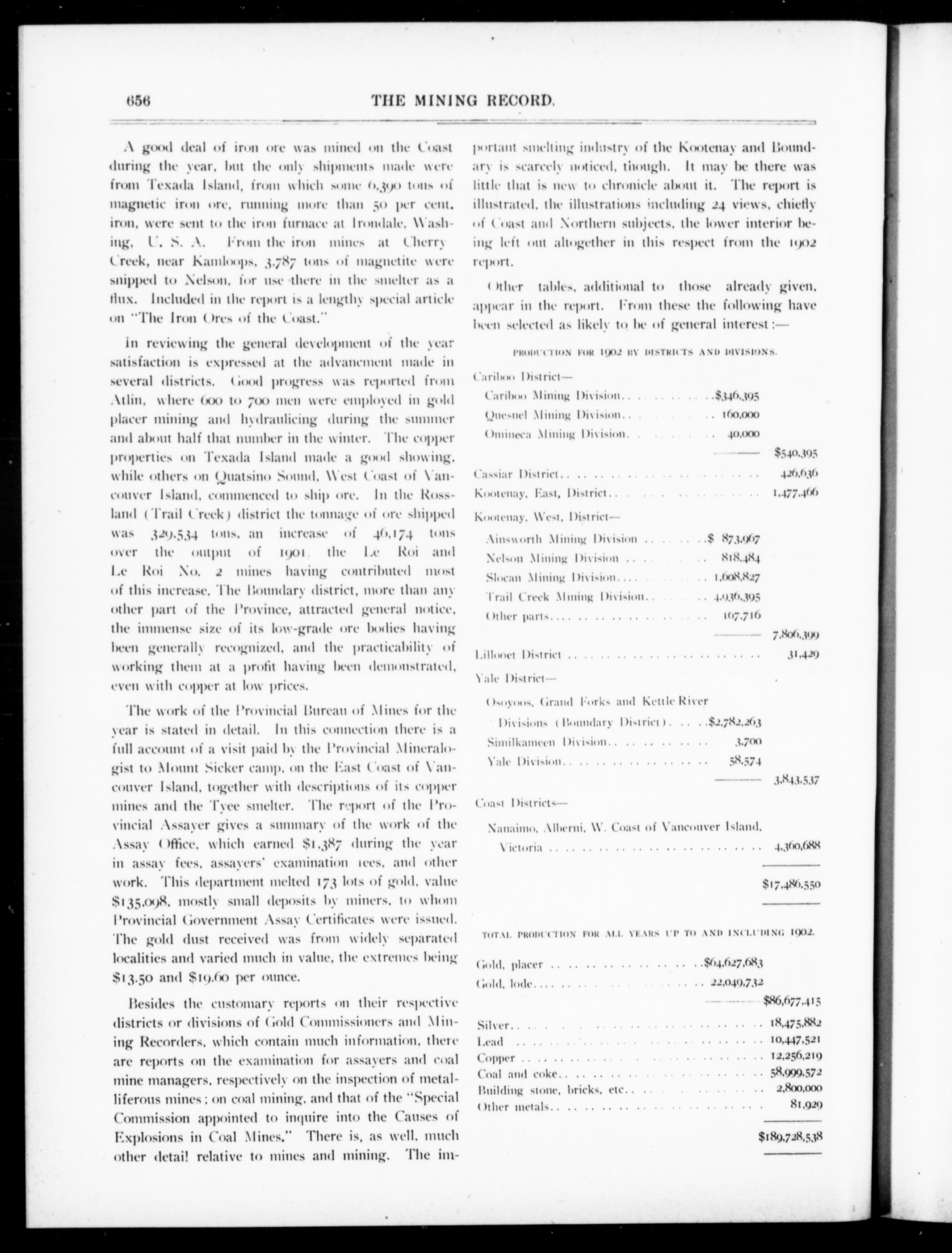 - The Mining record : Vol. 10, no. 6 (June 1903)