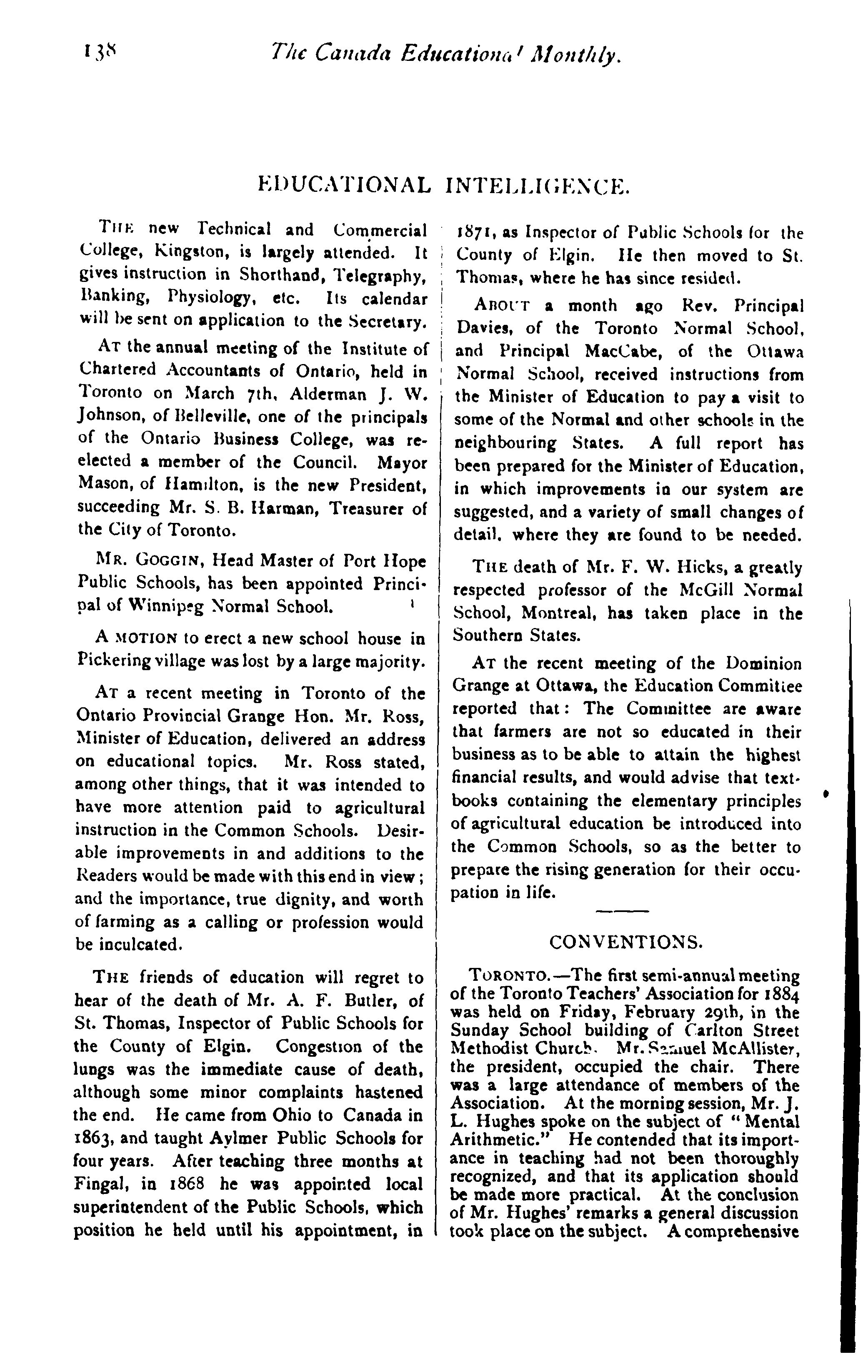 The Canada educational monthly and school chronicle. : The Canada educational monthly and school magazine : [Vol. 6] (Mar. 1884)
