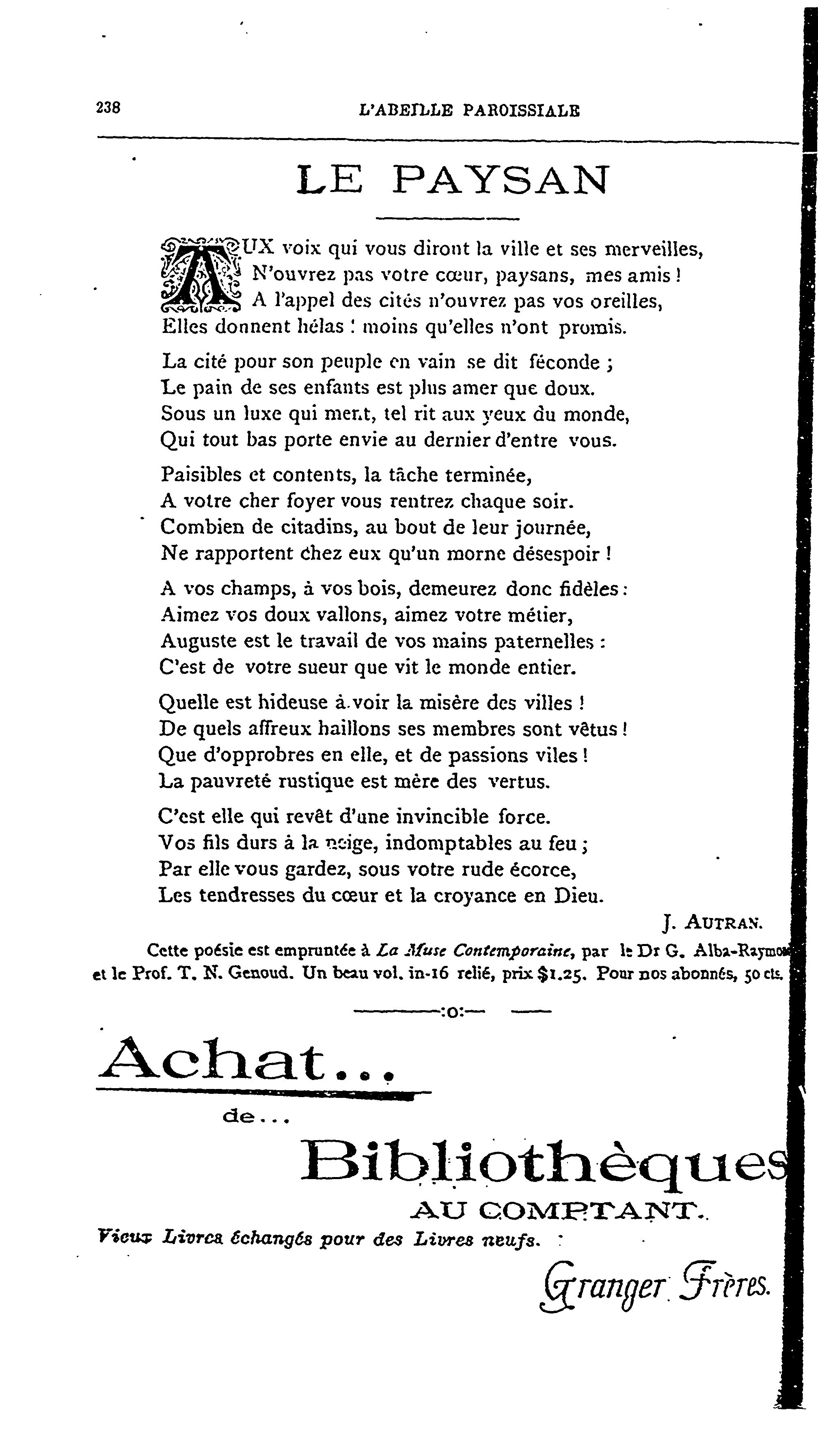 L'abeille paroissiale. : L'abeille paroissiale : No 8/9 (nov./déc. 1895)