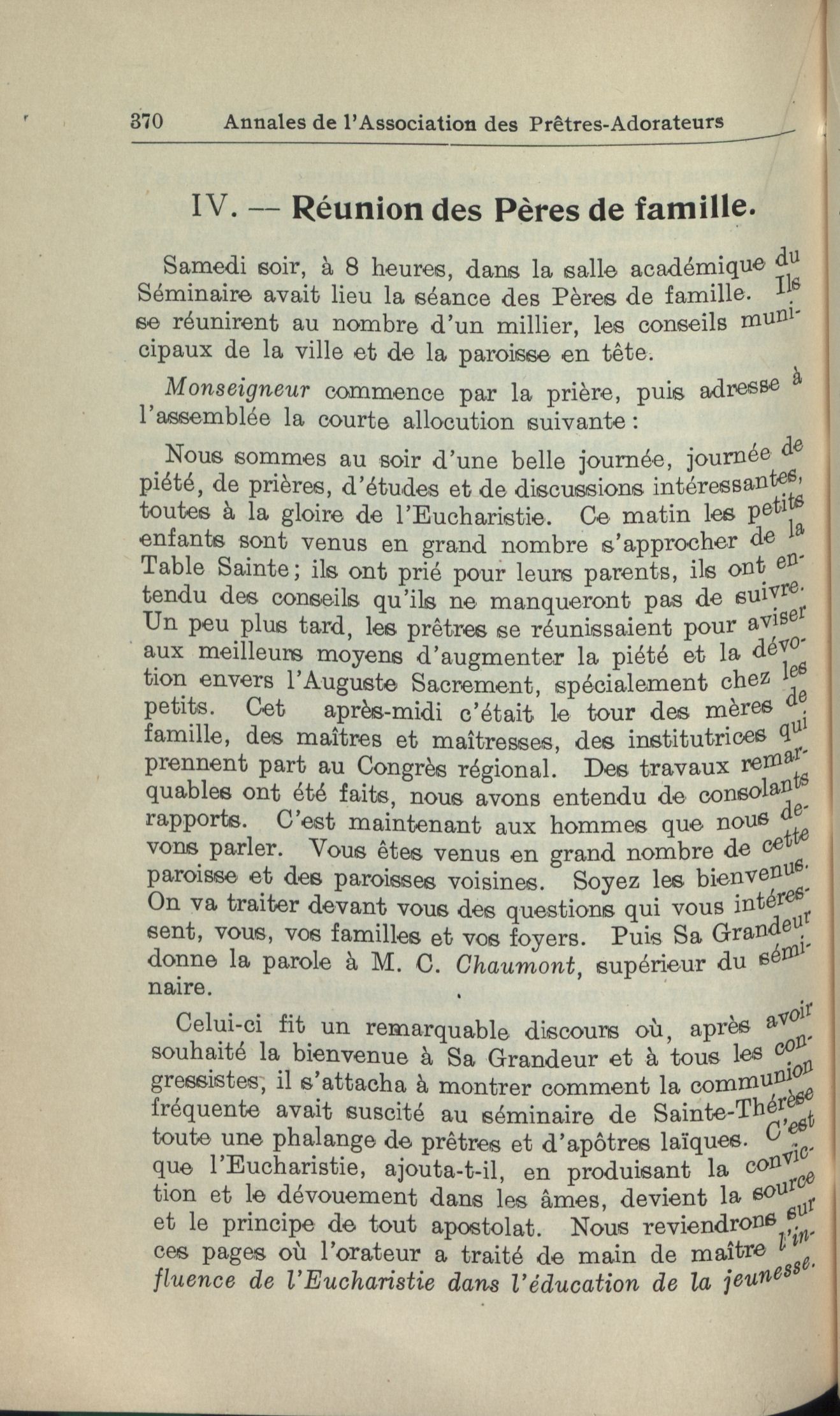 Annales de l'Association des prêtres-adorateurs. : Annales de l'Association des prêtres adorateurs : XVIème année, No 10 (Octobre 1913)