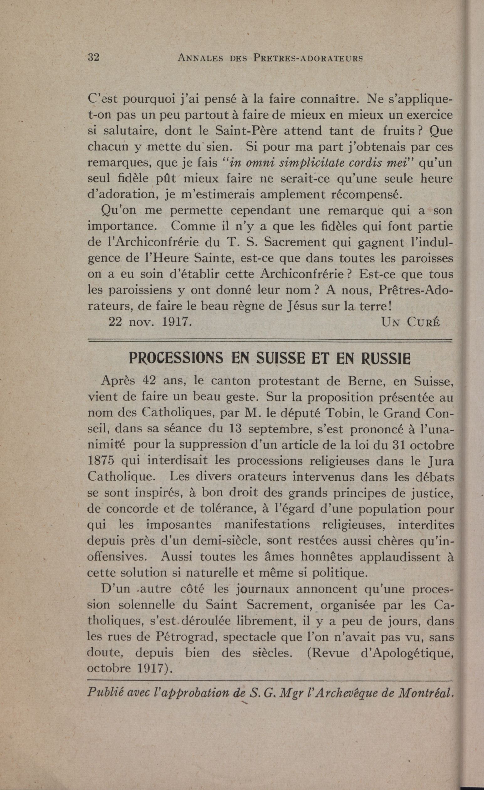 - Annales de l'Association des prêtres adorateurs et de la Ligue sacerdotale de la communion : XXIe année, No 1 (Janvier 1918)