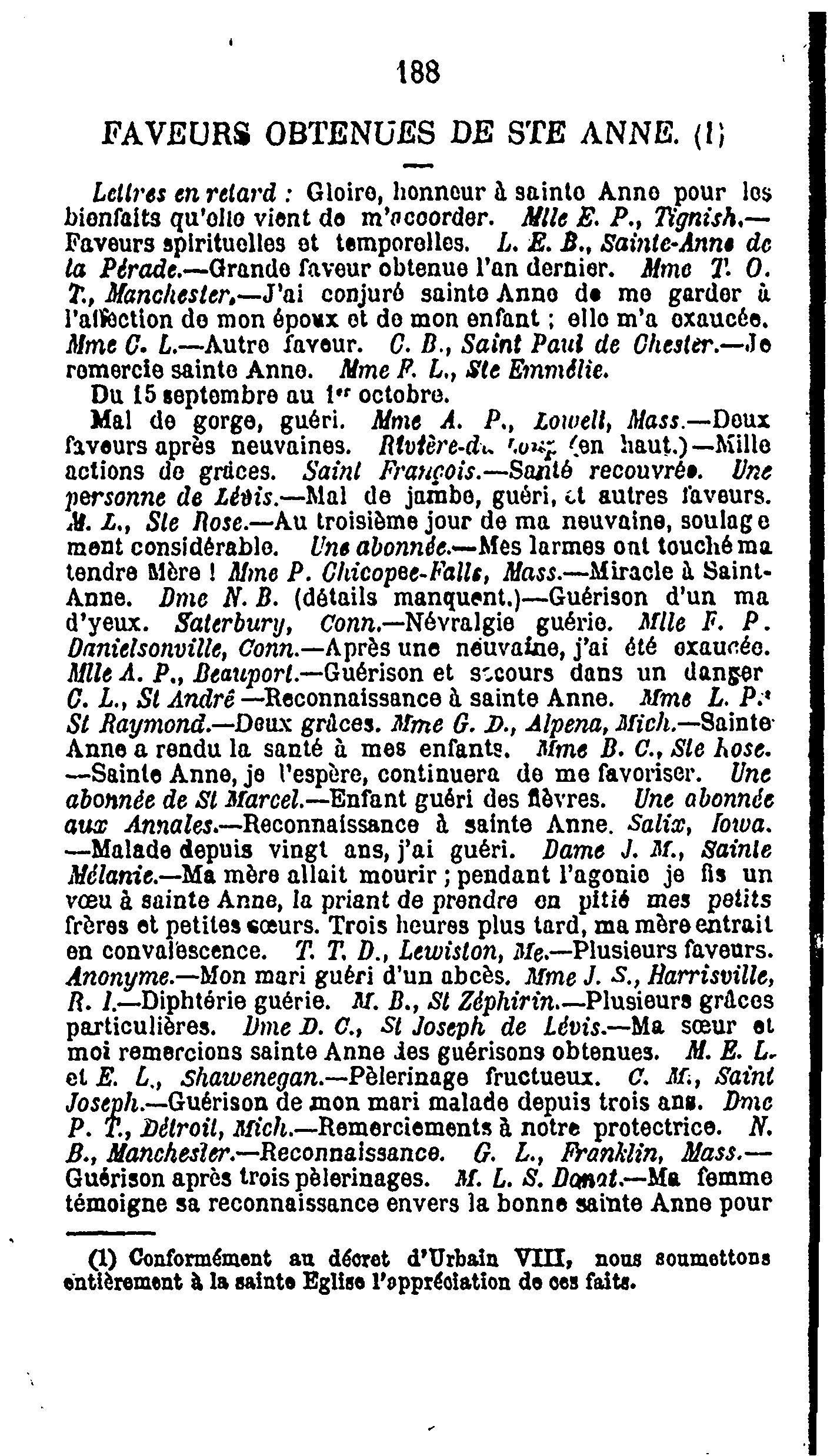 Annales de la bonne Ste. Anne de Beaupré. : Annales de la bonne Ste. Anne de Beaupré : Vol. 11, no 8 (nov. 1883)