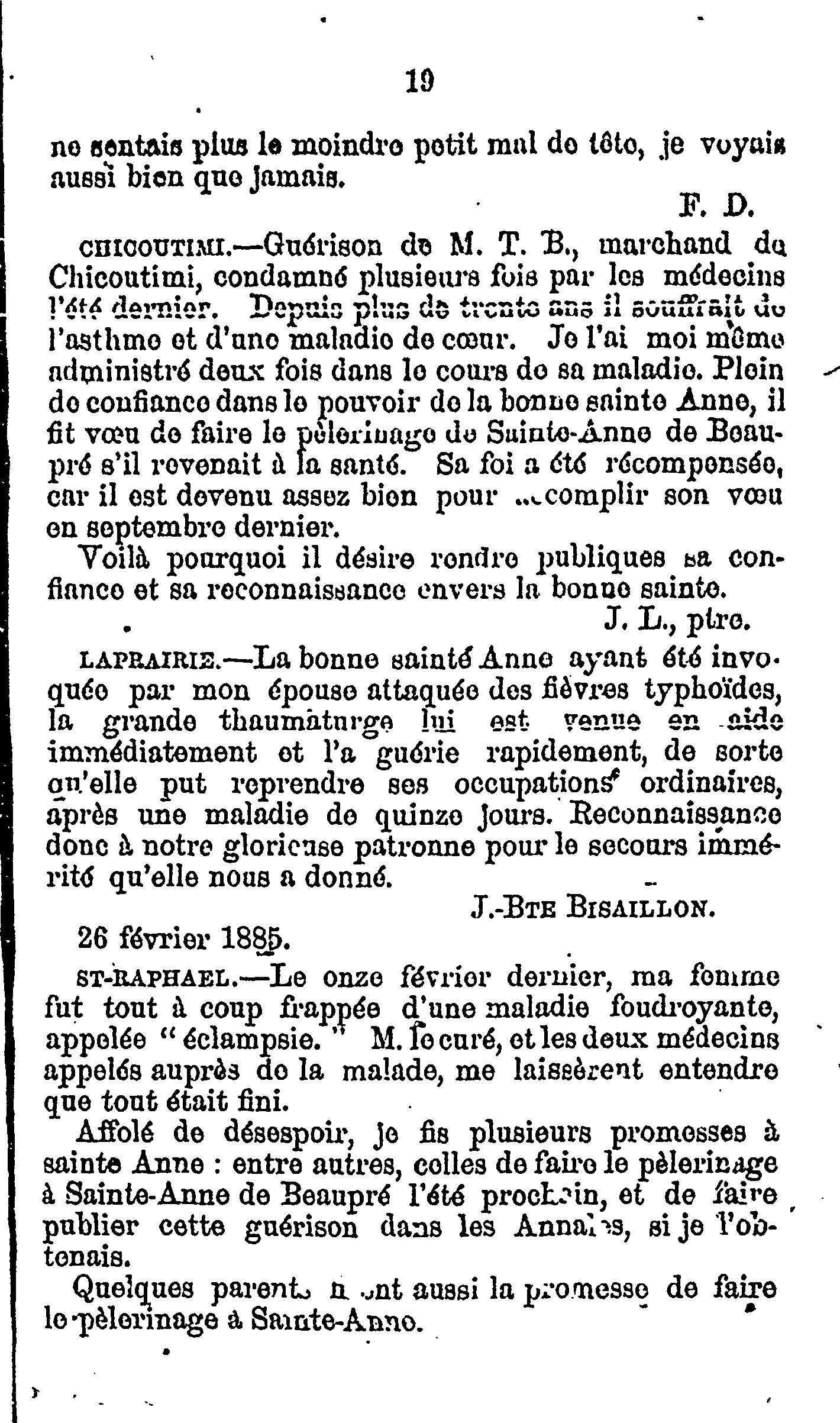 Annales de la bonne Ste. Anne de Beaupré : Vol. 13, no 1 (avril 1885)