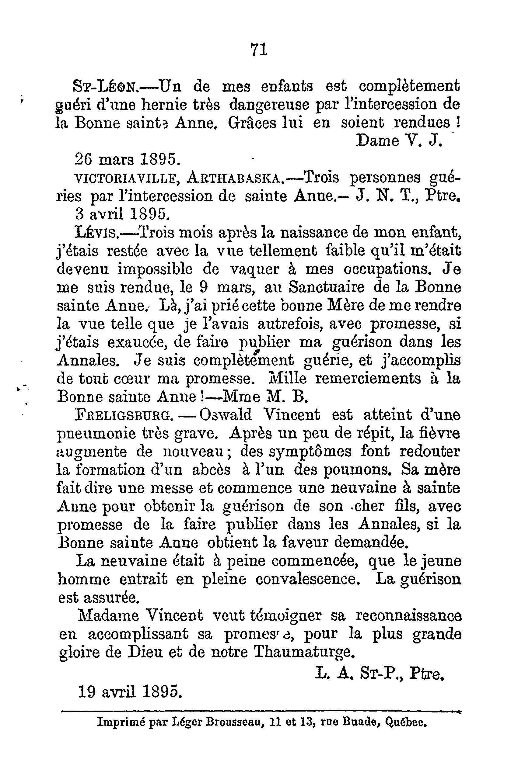 - Annales de la bonne Ste. Anne de Beaupré : Vol. 23, no 3 (juin 1895)
