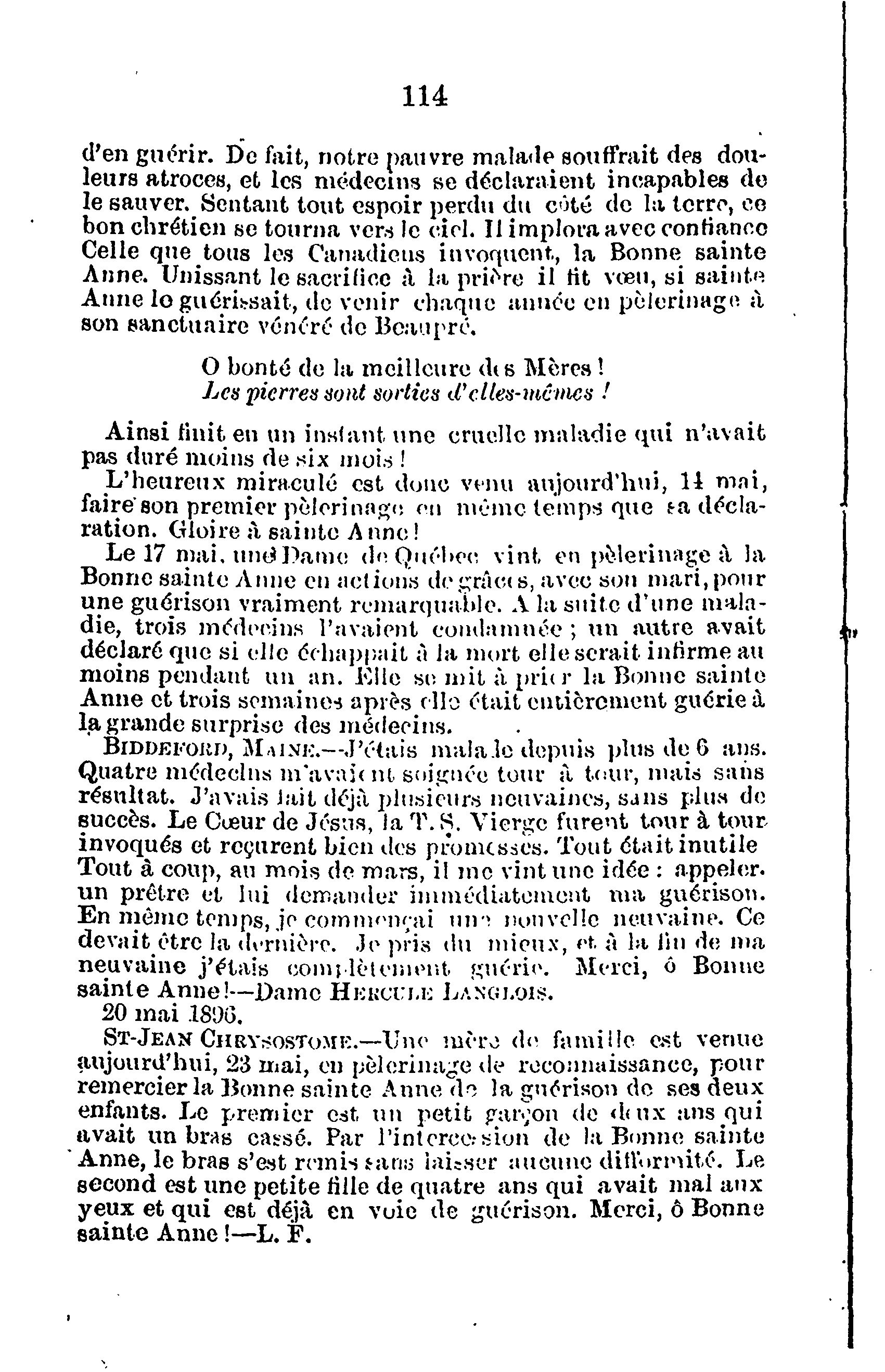 Annales de la bonne Ste. Anne de Beaupré. : Annales de la bonne Ste. Anne de Beaupré : Vol. 24, no 5 (août 1896)