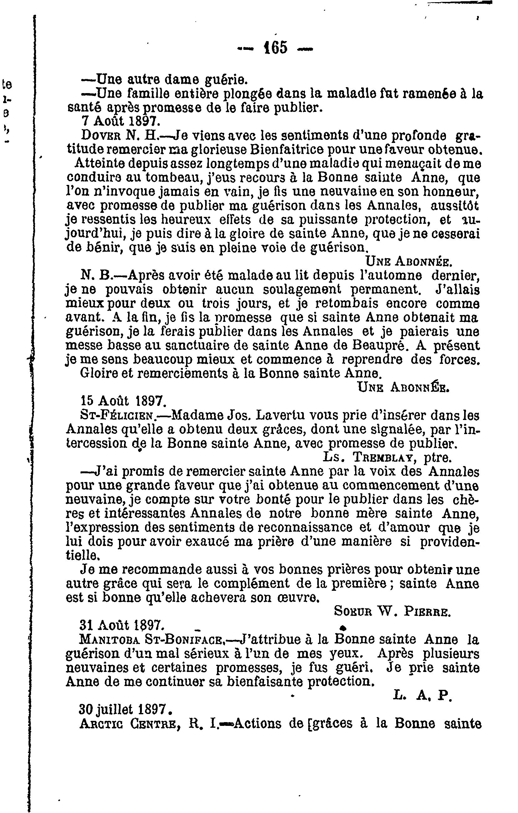 Annales de la bonne Ste. Anne de Beaupré. : Annales de la bonne Ste. Anne de Beaupré : Vol. 25, no 7 (oct. 1897)