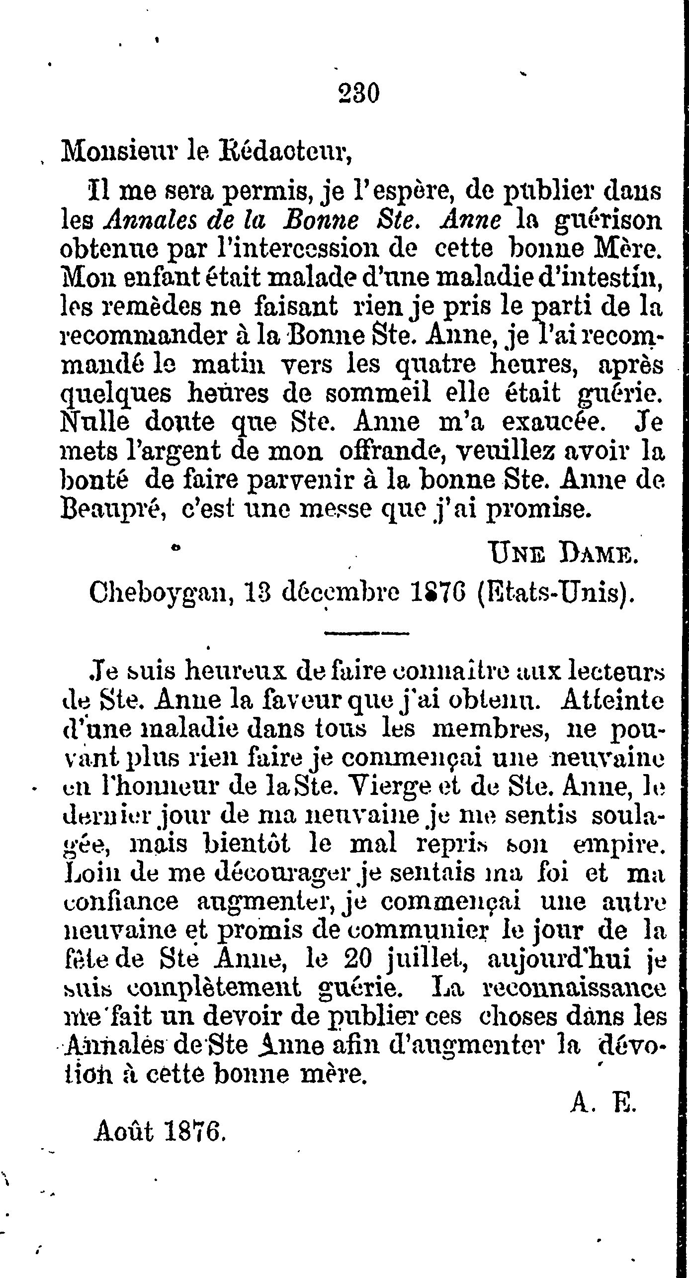 - Annales de la bonne Ste. Anne de Beaupré : Vol. 4, no 10 (janv. 1877)