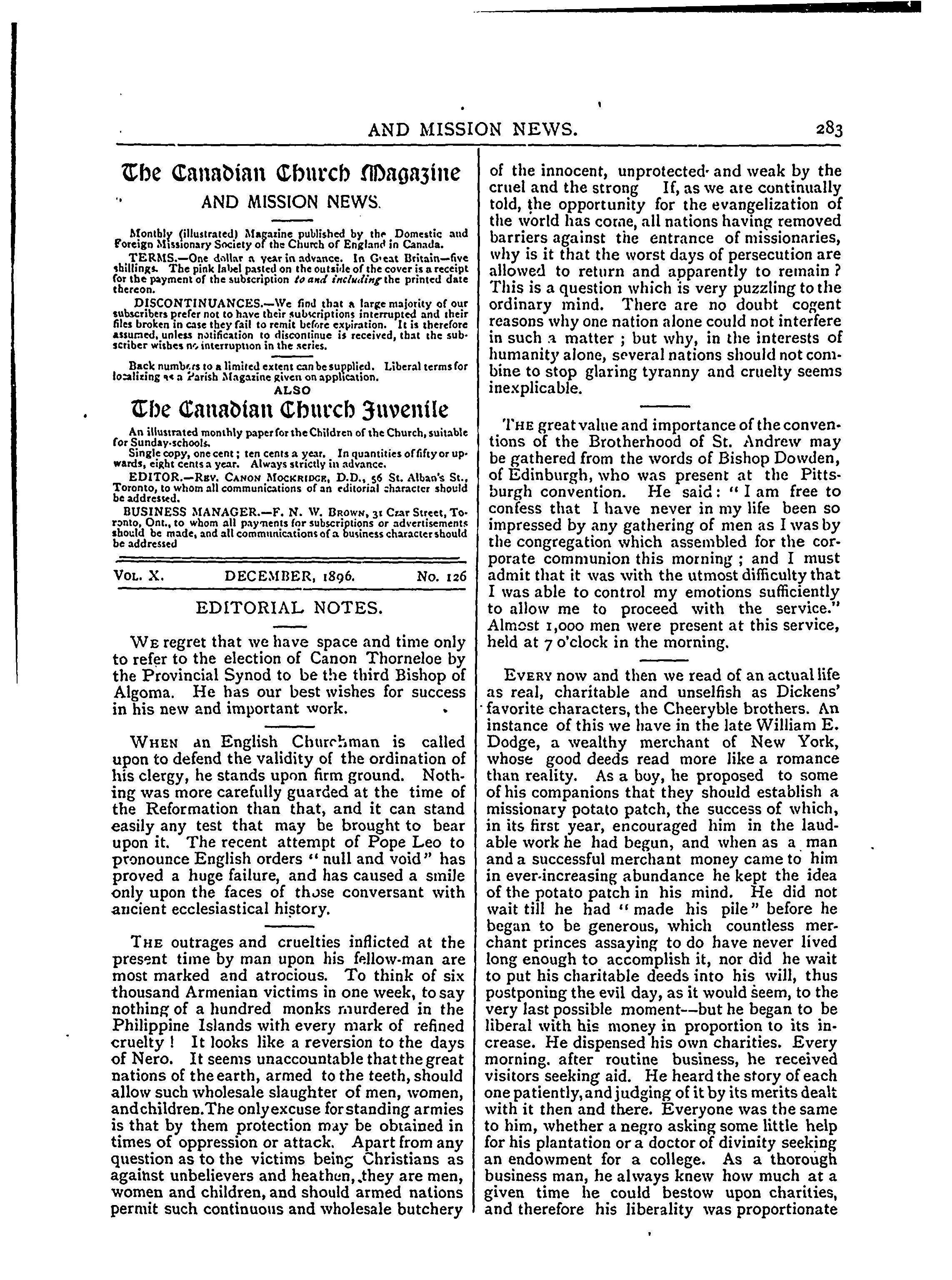 The Canadian church magazine and mission news. : The Canadian church magazine and mission news : Vol. 10, no. 126 (Dec. 1896)