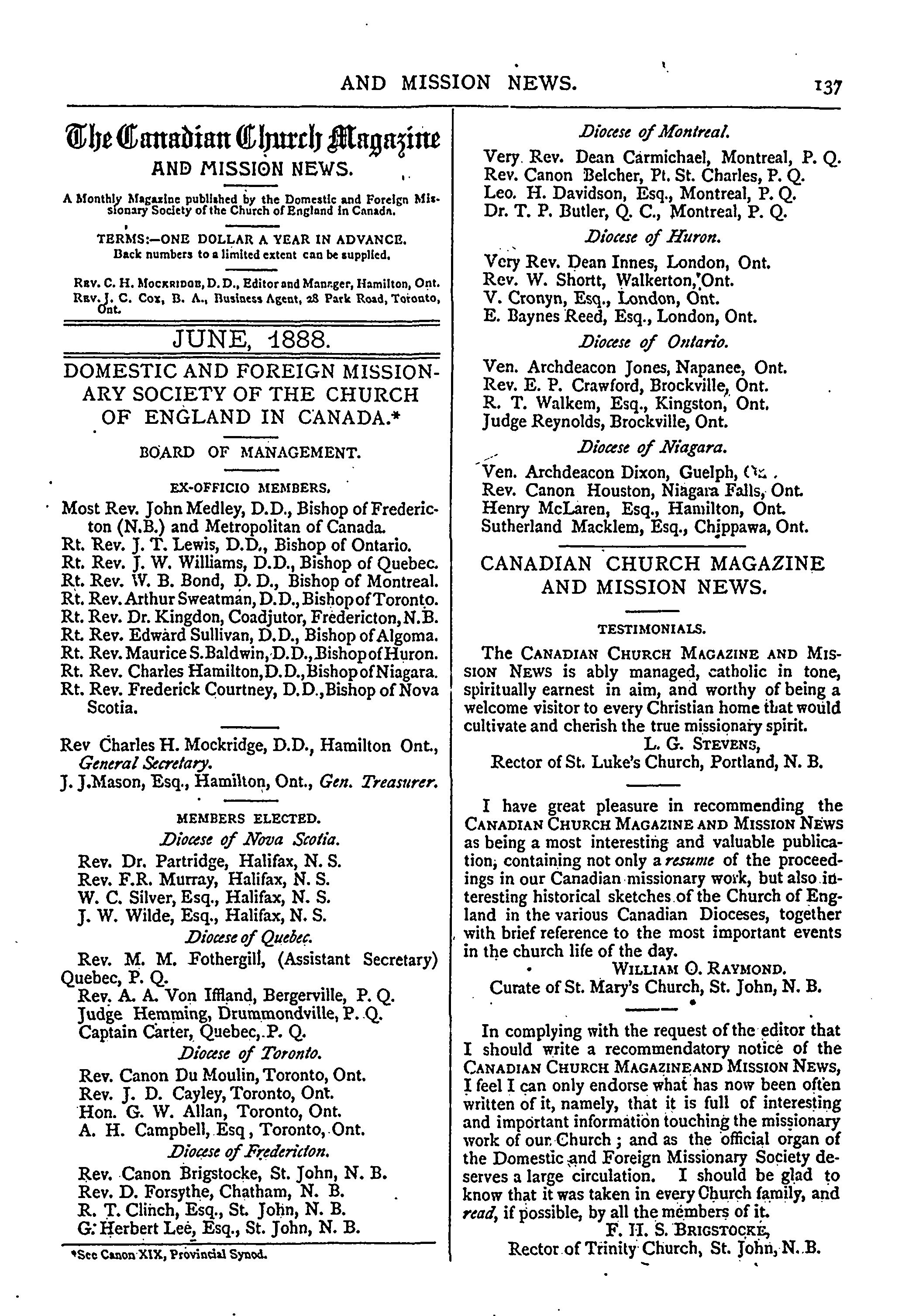 - Hamilton, Ont. :, Domestic and Foreign Missionary Society of the Church of England in Canada, [1888]