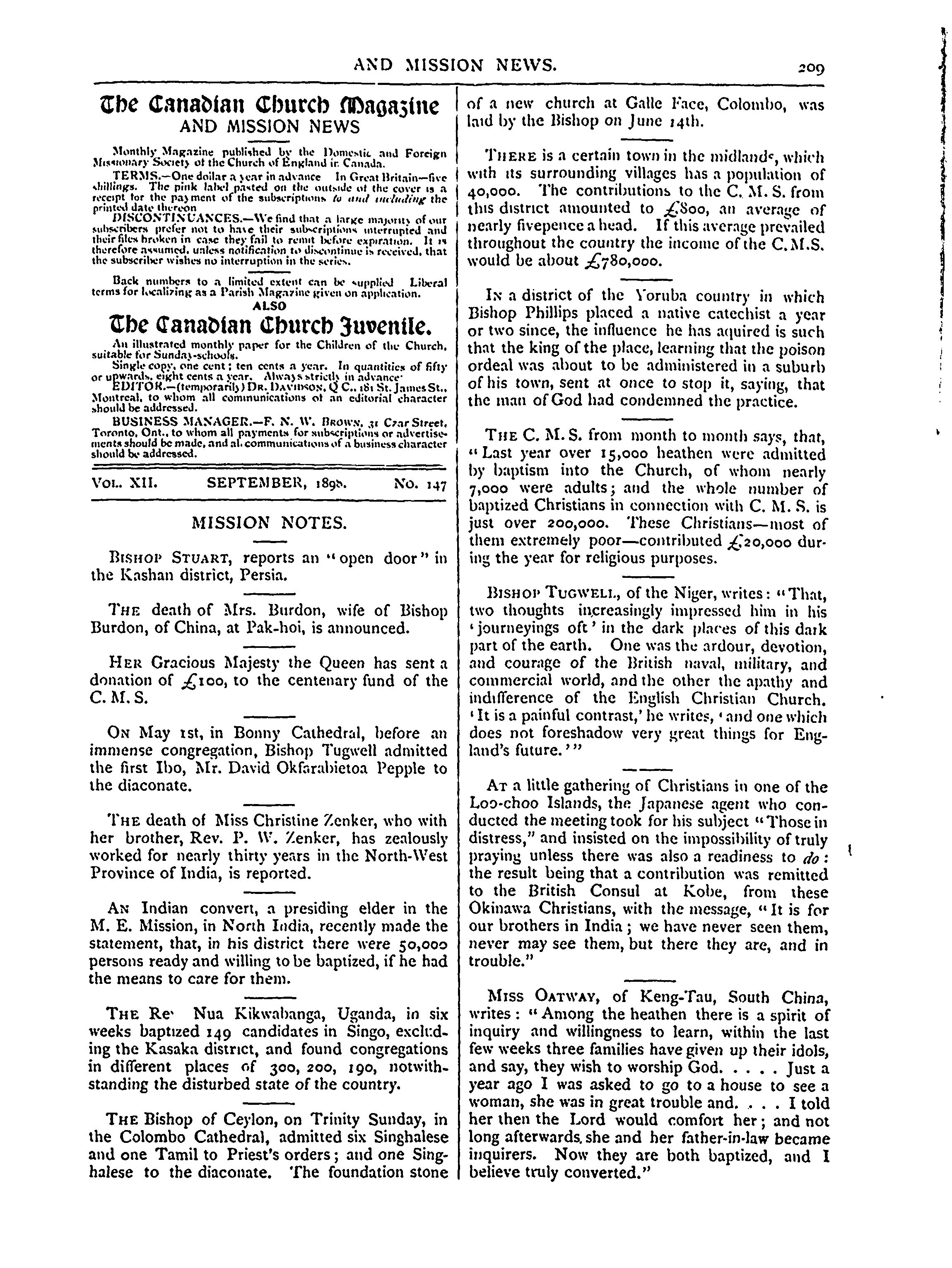 - The Canadian church magazine and mission news : Vol. 12, no. 147 (Sept. 1898)