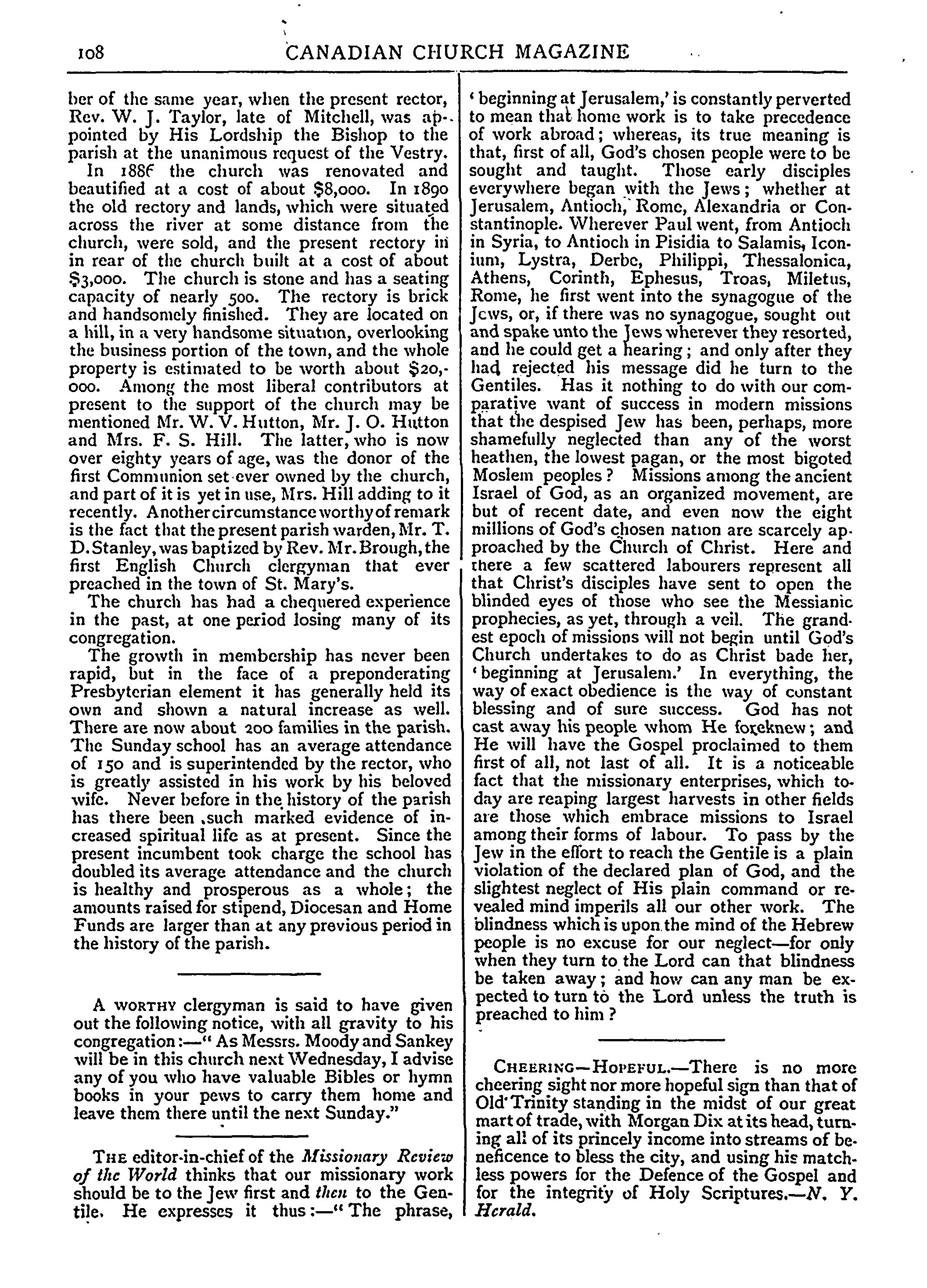 - The Canadian church magazine and mission news : Vol. 6, no. 71 (May 1892)