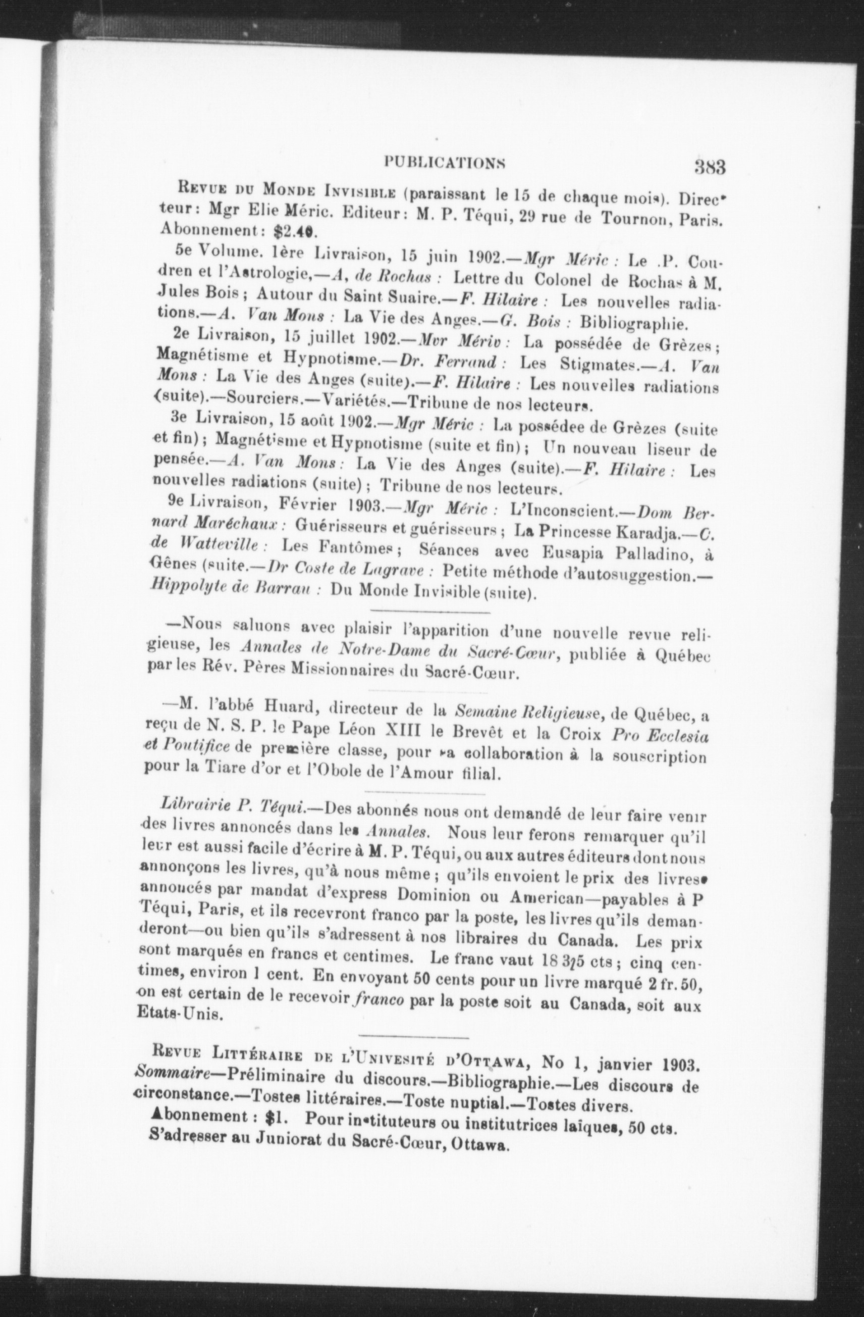- Annales du T.S. Rosaire et chronique du pélérinage du Sanctuaire du Cap de la Madeleine : 12e année, no 12 (avril 1903)