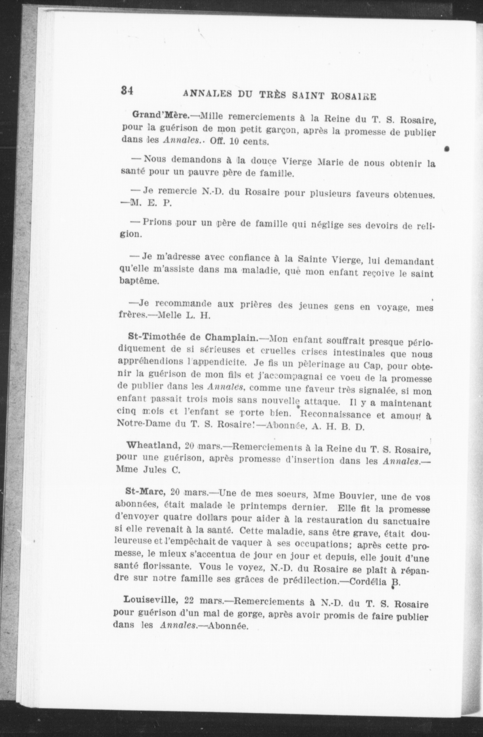 - Annales du T.S. Rosaire et chronique du pélérinage du Sanctuaire du Cap de la Madeleine : 14e année, [no 1 (mai 1904)]