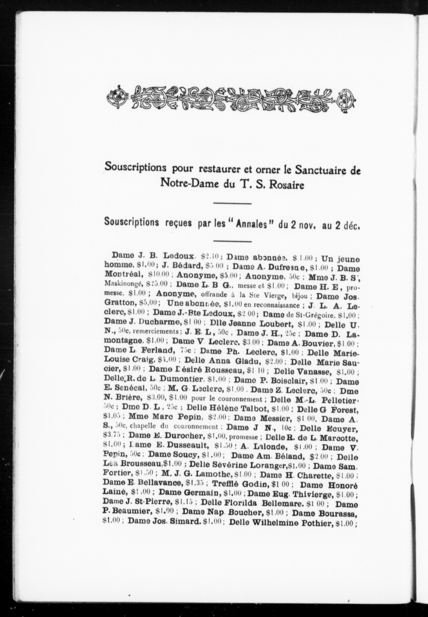 - Annales du T.S. Rosaire et chronique du pélérinage du Sanctuaire du Cap de la Madeleine : 14e année, no 8 (déc. 1904)