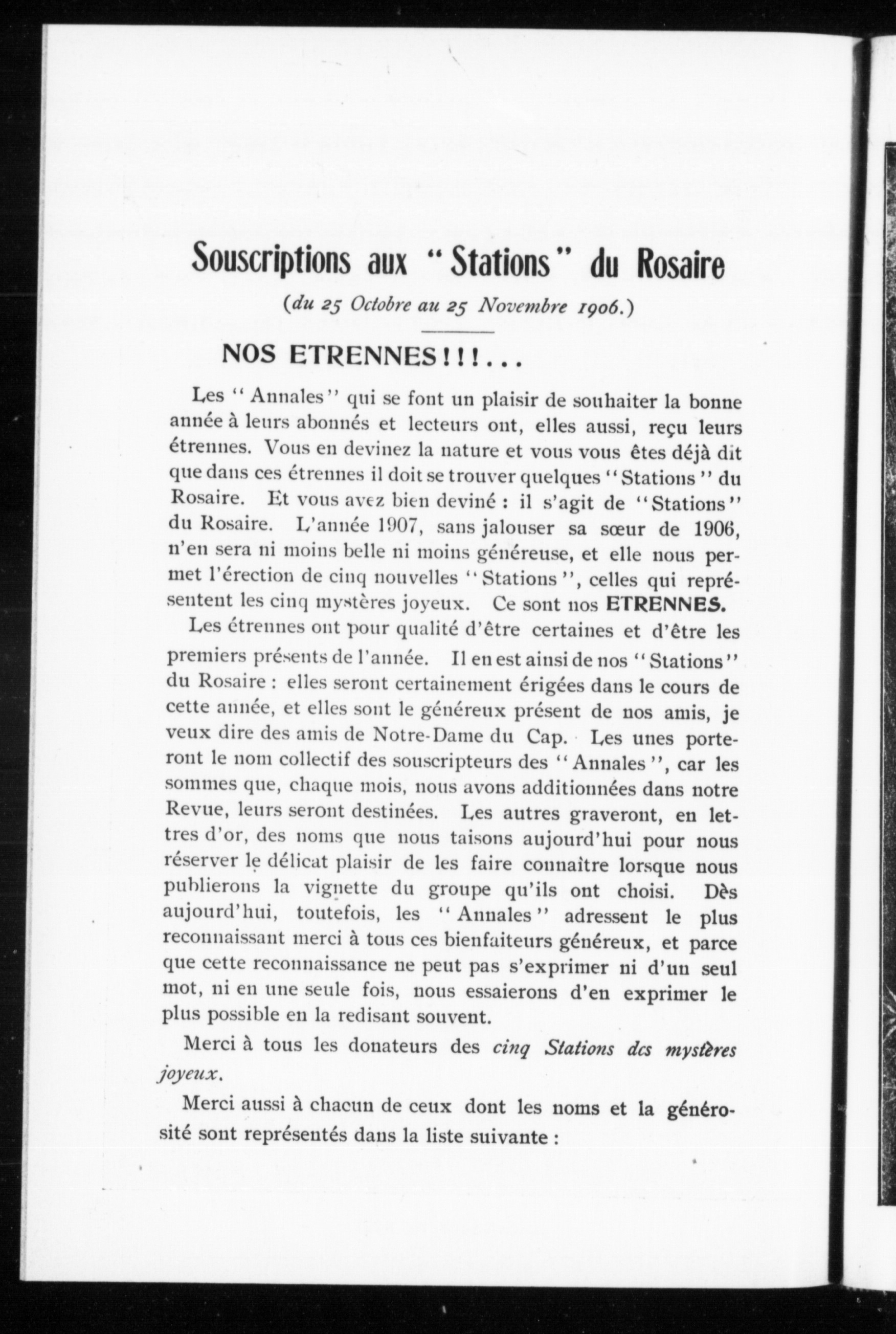 - [Annales du T.S. Rosaire et chronique du pélérinage du Sanctuaire du Cap de la Madeleine] : [16e année] (janv. 1907)