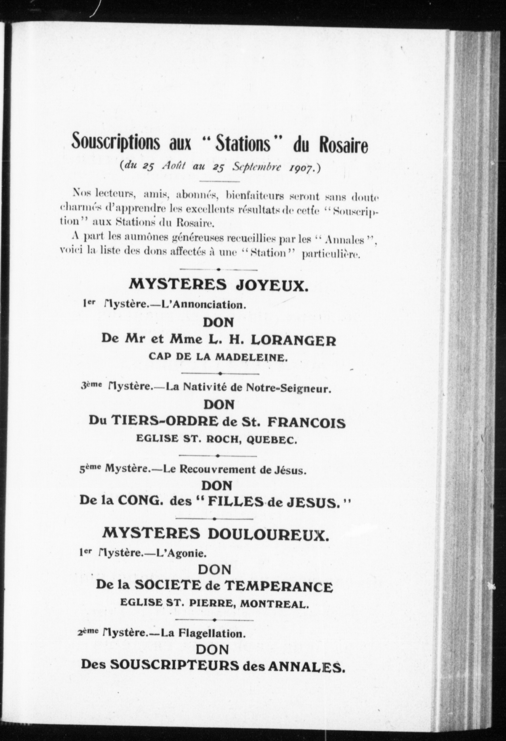 - [Annales du T.S. Rosaire et chronique du pélérinage du Sanctuaire du Cap de la Madeleine] : [17e année] (nov. 1907)