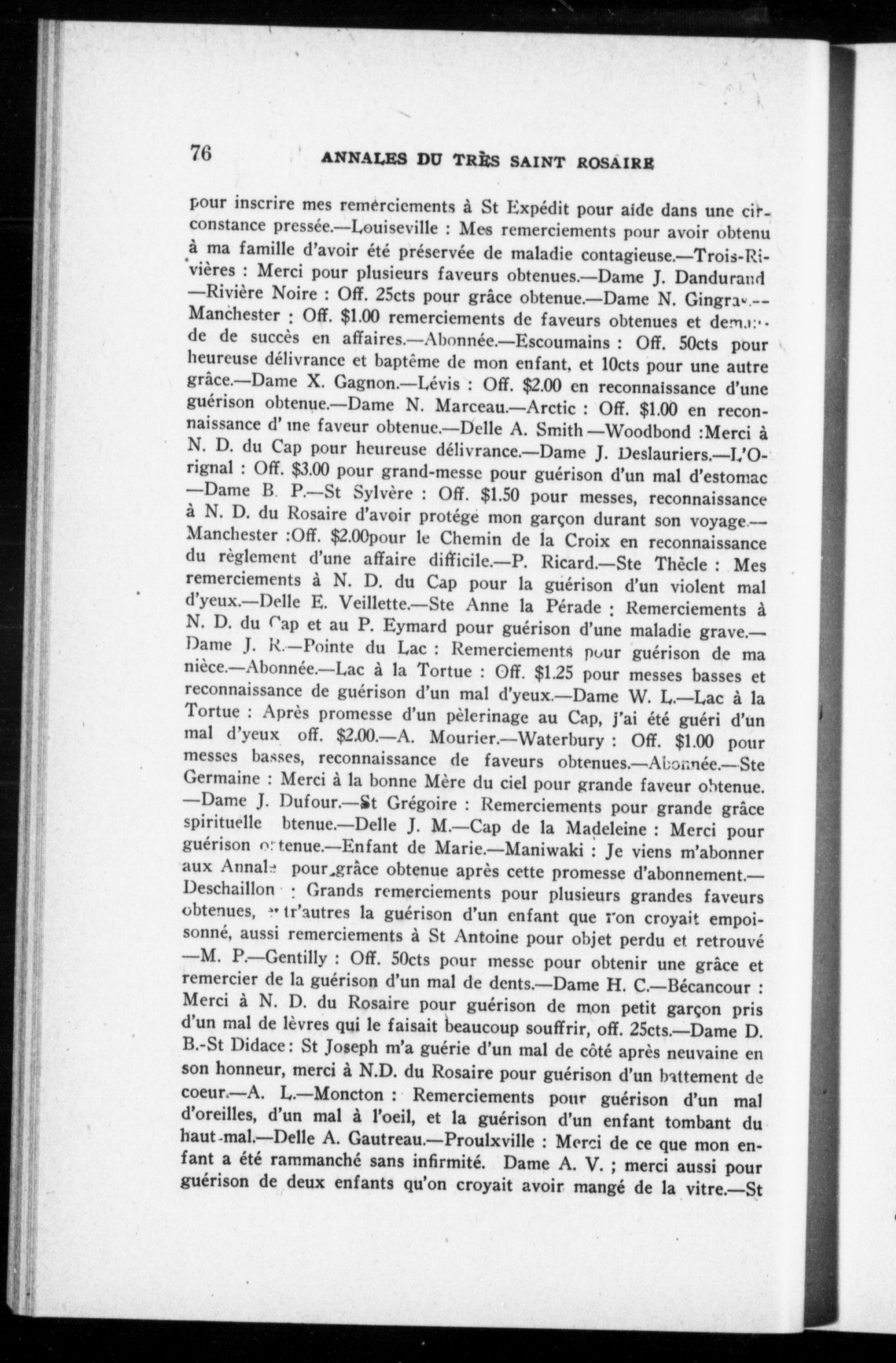 - [Annales du T.S. Rosaire et chronique du pélérinage du Sanctuaire du Cap de la Madeleine] : [23e année] (juin 1913)