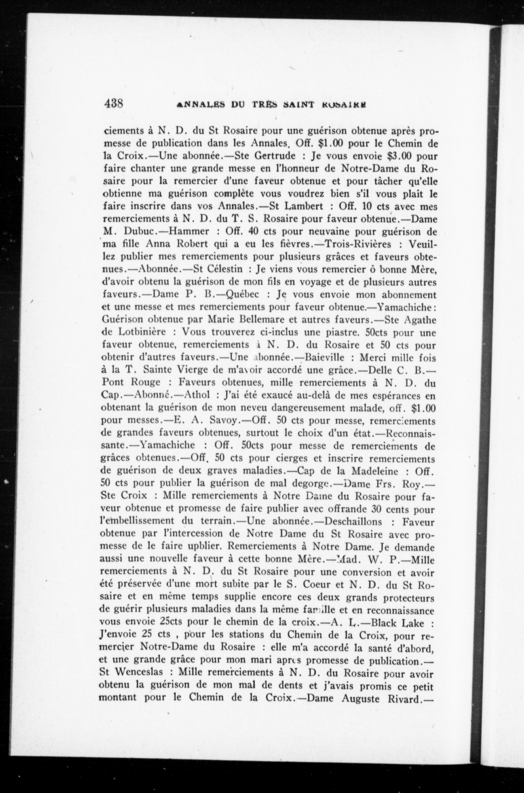 - [Annales du T.S. Rosaire et chronique du pélérinage du Sanctuaire du Cap de la Madeleine] : [23e année] (mars 1914)