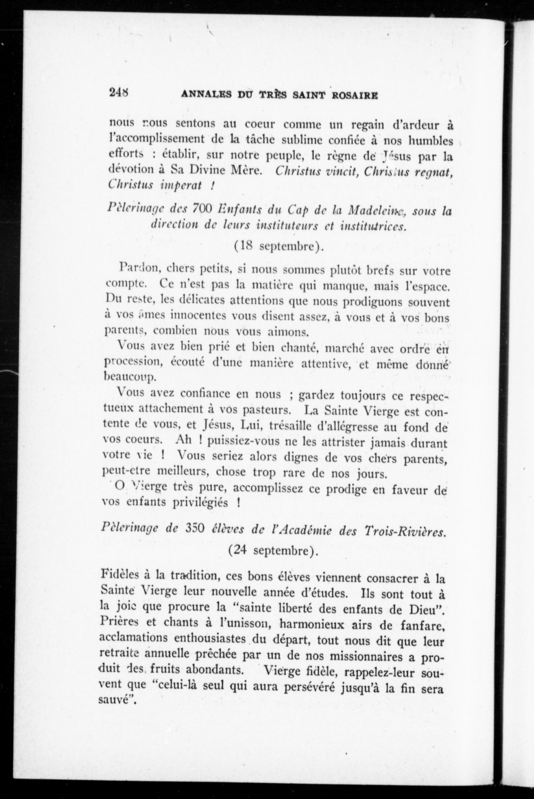 - [Annales du T.S. Rosaire et chronique du pélérinage du Sanctuaire du Cap de la Madeleine] : Vol. 13, no 7 (nov. 1914)