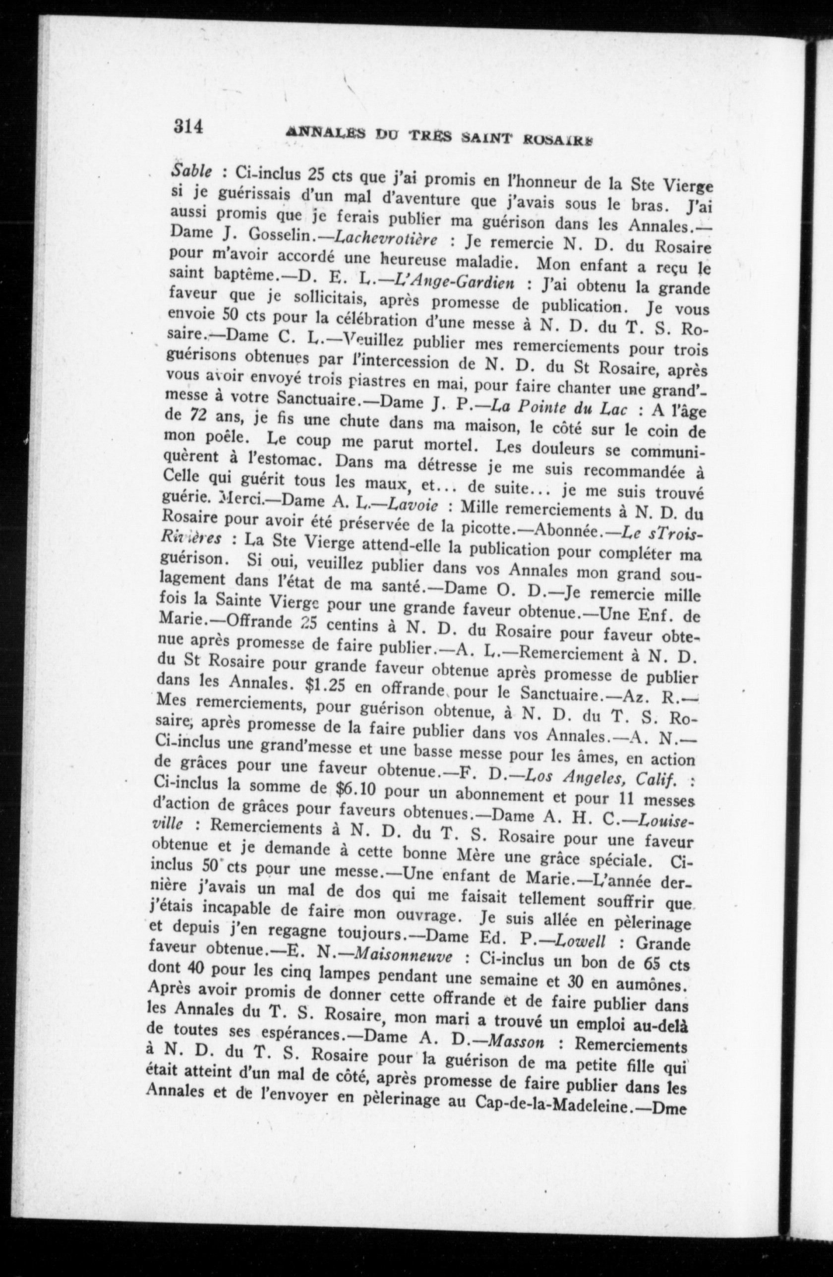 - [Annales du T.S. Rosaire et chronique du pélérinage du Sanctuaire du Cap de la Madeleine] : Vol. 13, no [8] (déc. 1914)