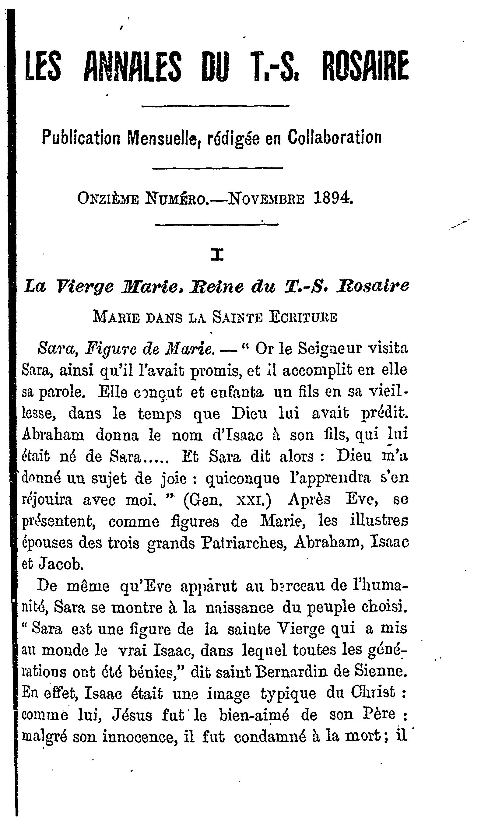 Les annales du T.S. Rosaire : Vol. 3, no 11 (nov. 1894)