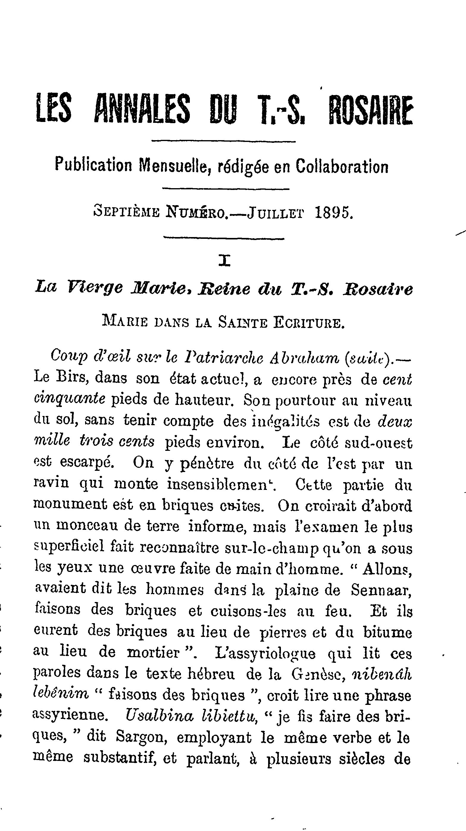 - Les annales du T.S. Rosaire : Vol. 4, no 7 (juil. 1895)