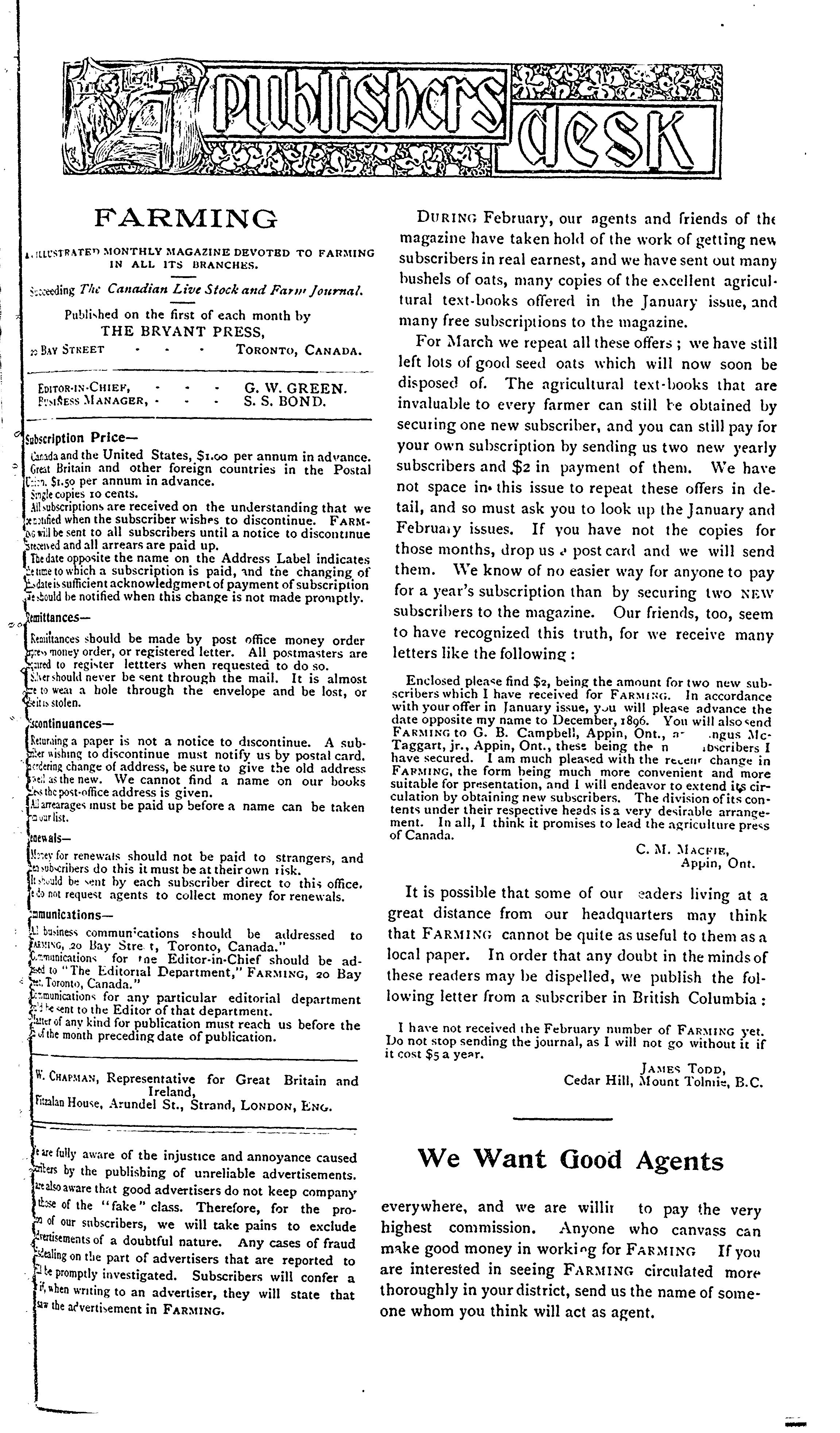 - Farming : Vol. 13, no. 7 (Mar. 1896)
