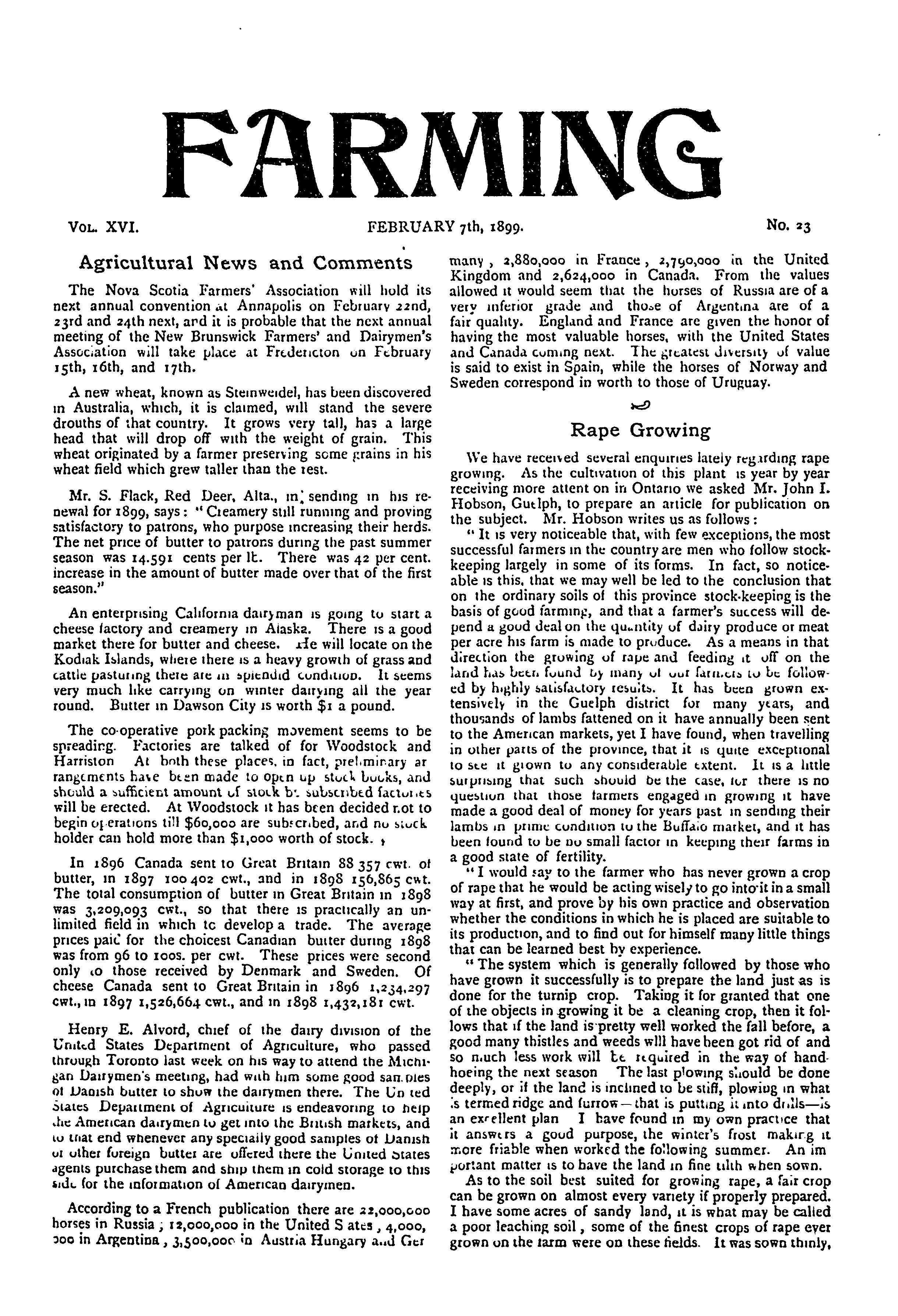 Farming : Vol. 16, no. 23 (Feb. 7, 1899)