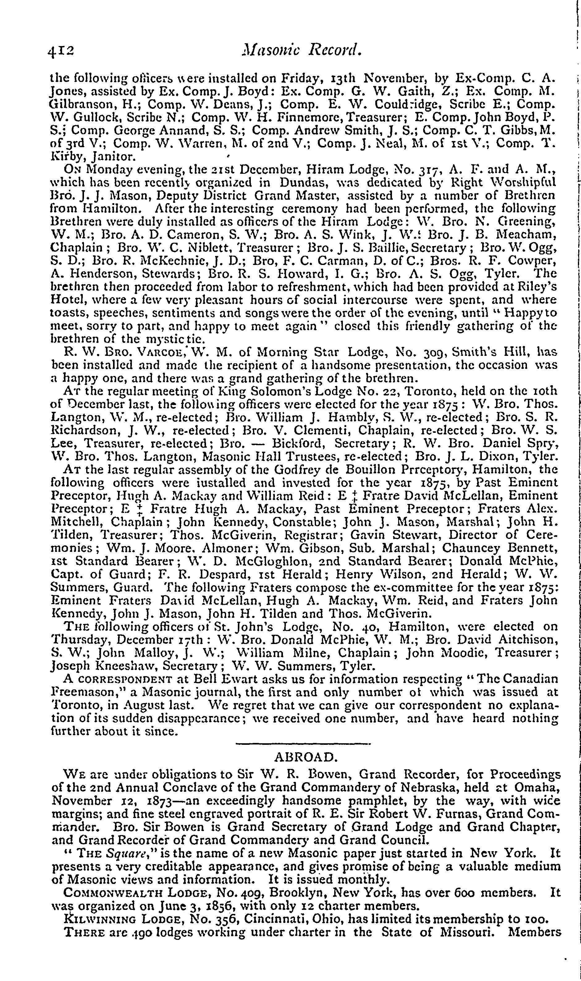 The craftsman and Canadian Masonic record : Vol. 9, no. 1 (Jan. 1, 1874 [i.e. 1875])