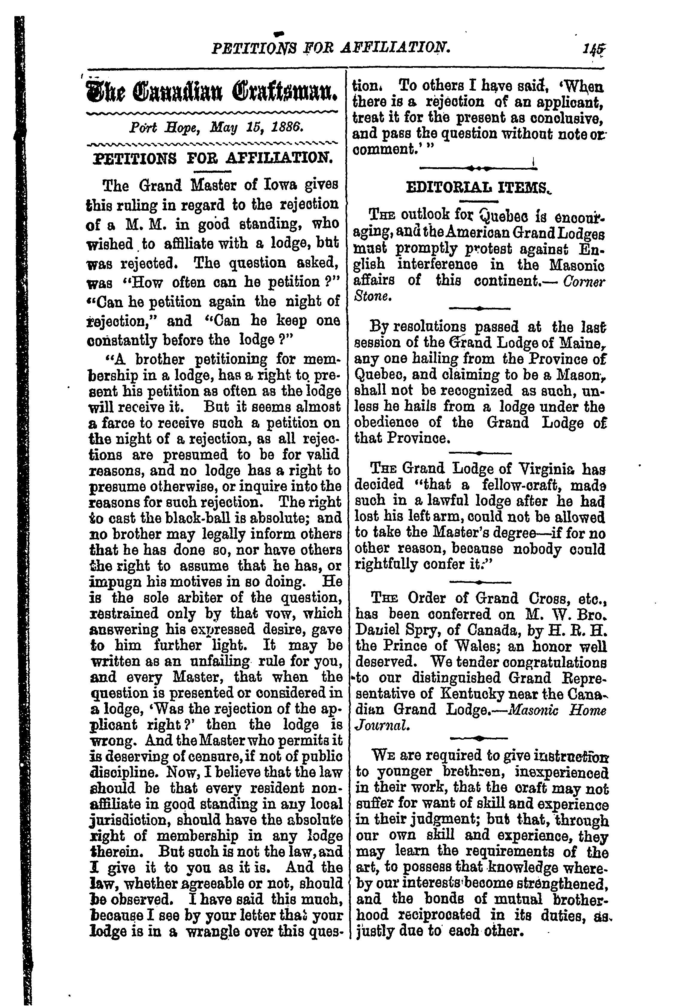 The Canadian craftsman and Masonic record : Vol. 20, no. 5 (May 15, 1886)
