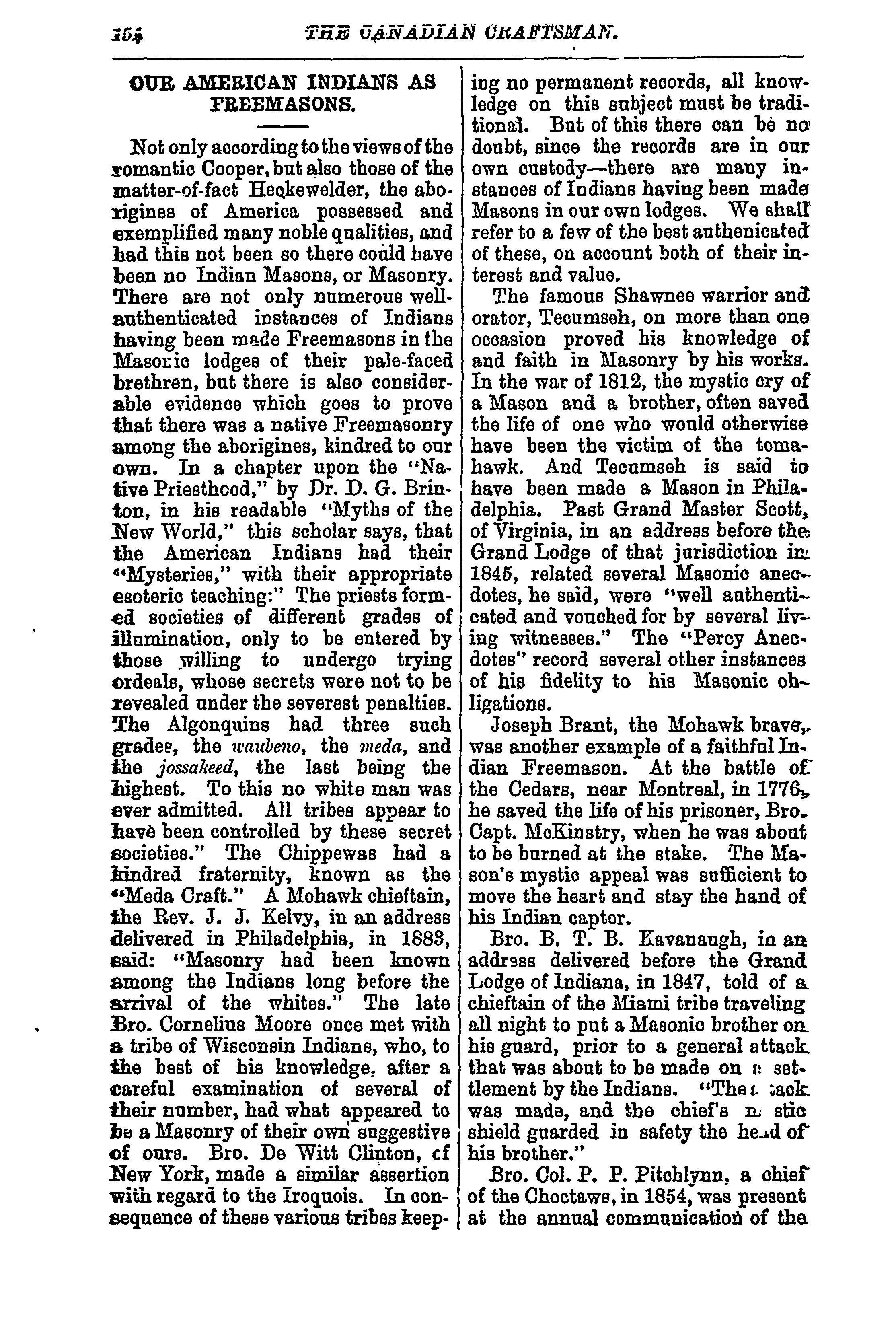 - The Canadian craftsman and Masonic record : Vol. 20, no. 5 (May 15, 1886)