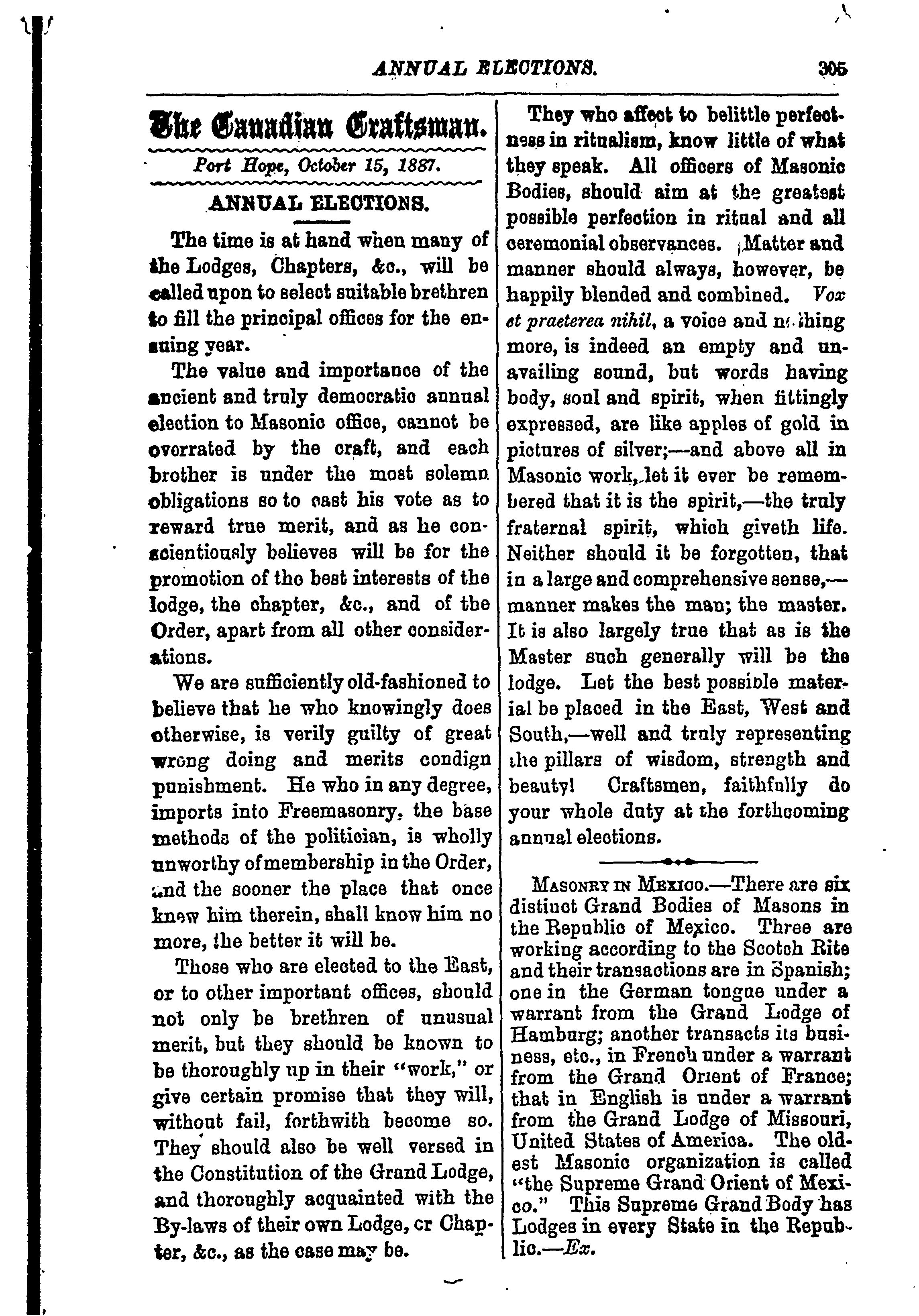 The Canadian craftsman and Masonic record : Vol. 21, no. 10 (Oct. 15, 1887)