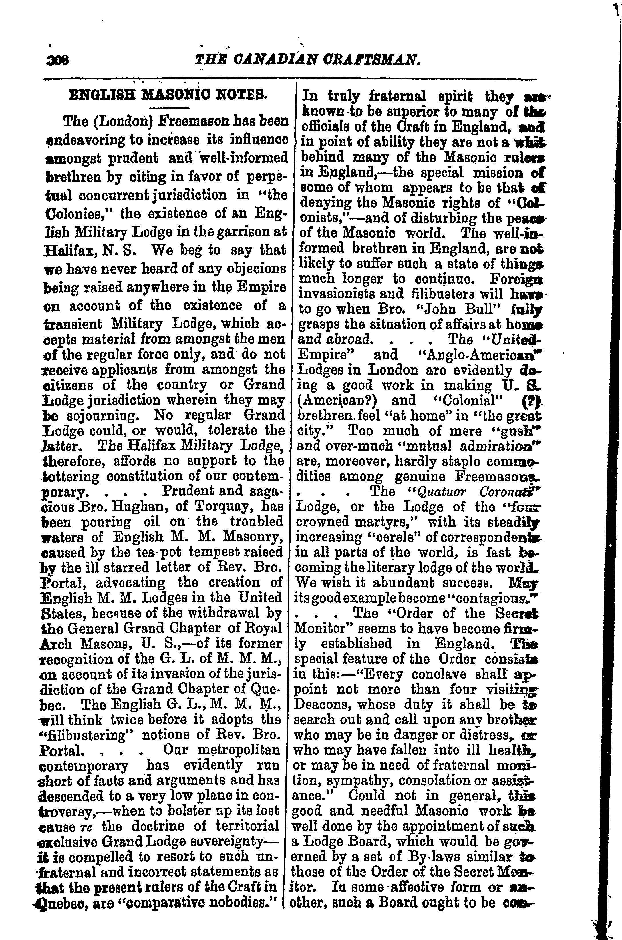 - The Canadian craftsman and Masonic record : Vol. 21, no. 10 (Oct. 15, 1887)