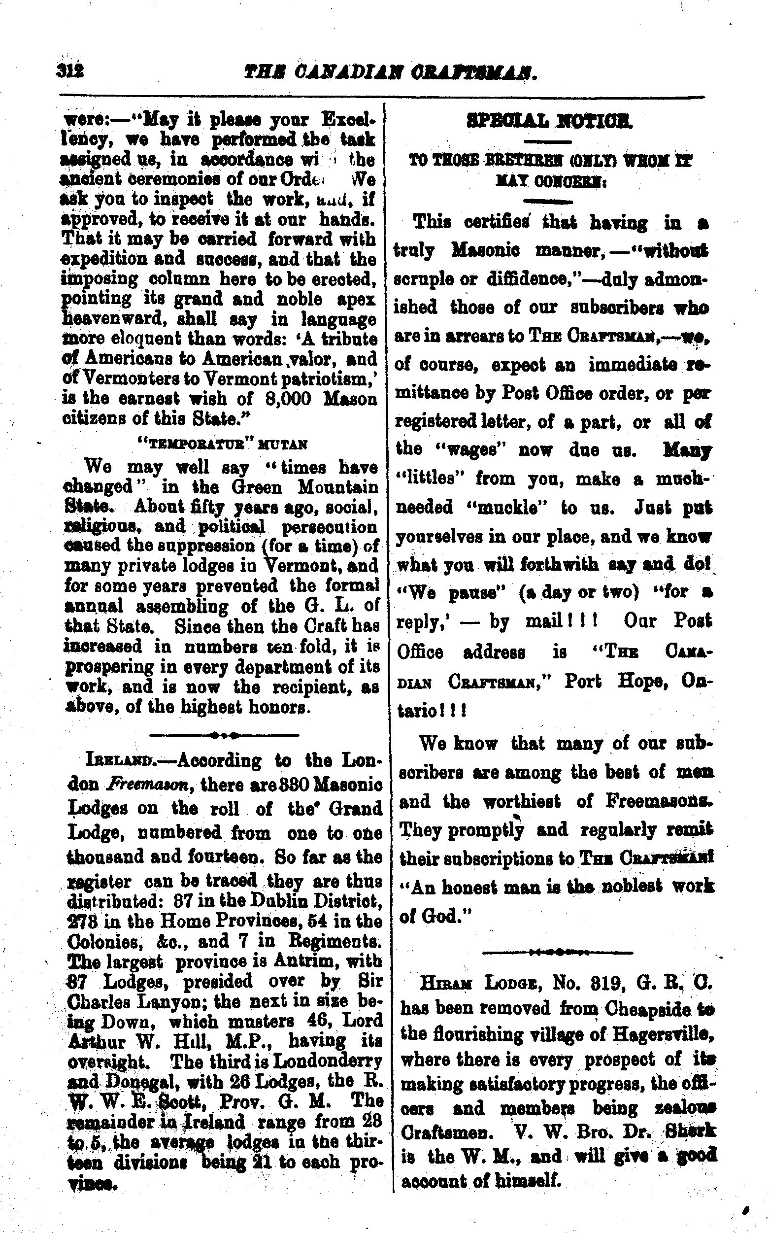 The Canadian craftsman and Masonic record. : The Canadian craftsman and Masonic record :