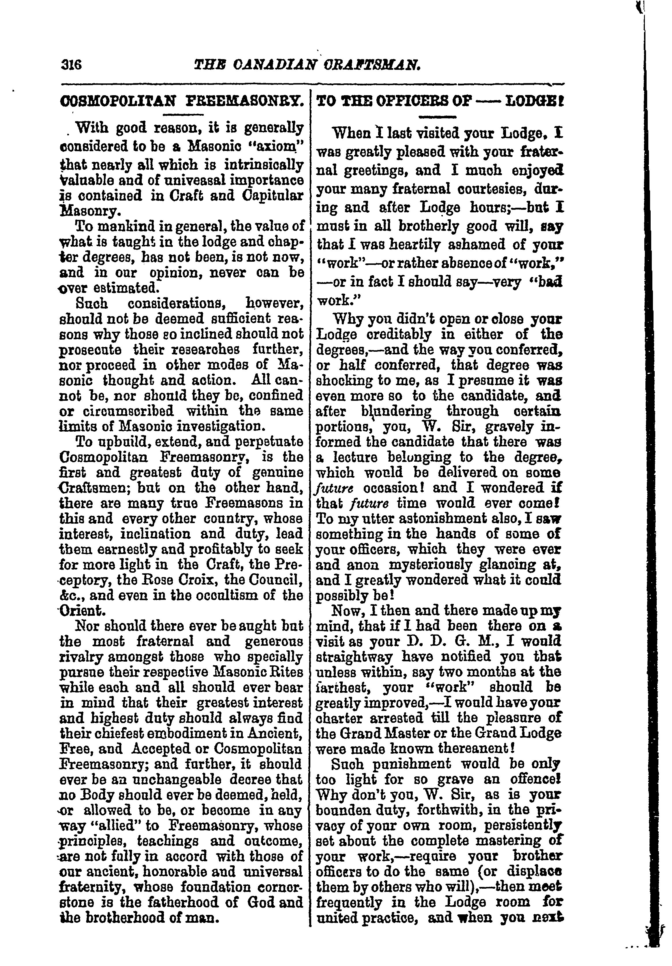 - The Canadian craftsman and Masonic record : Vol. 21, no. 10 (Oct. 15, 1887)