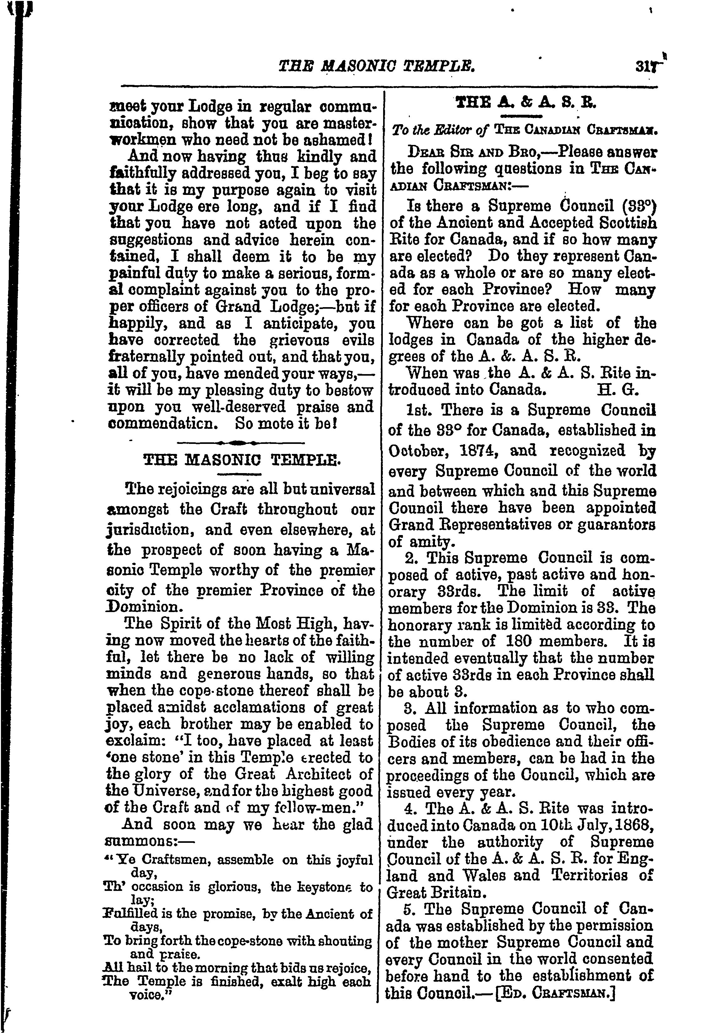 - The Canadian craftsman and Masonic record : Vol. 21, no. 10 (Oct. 15, 1887)