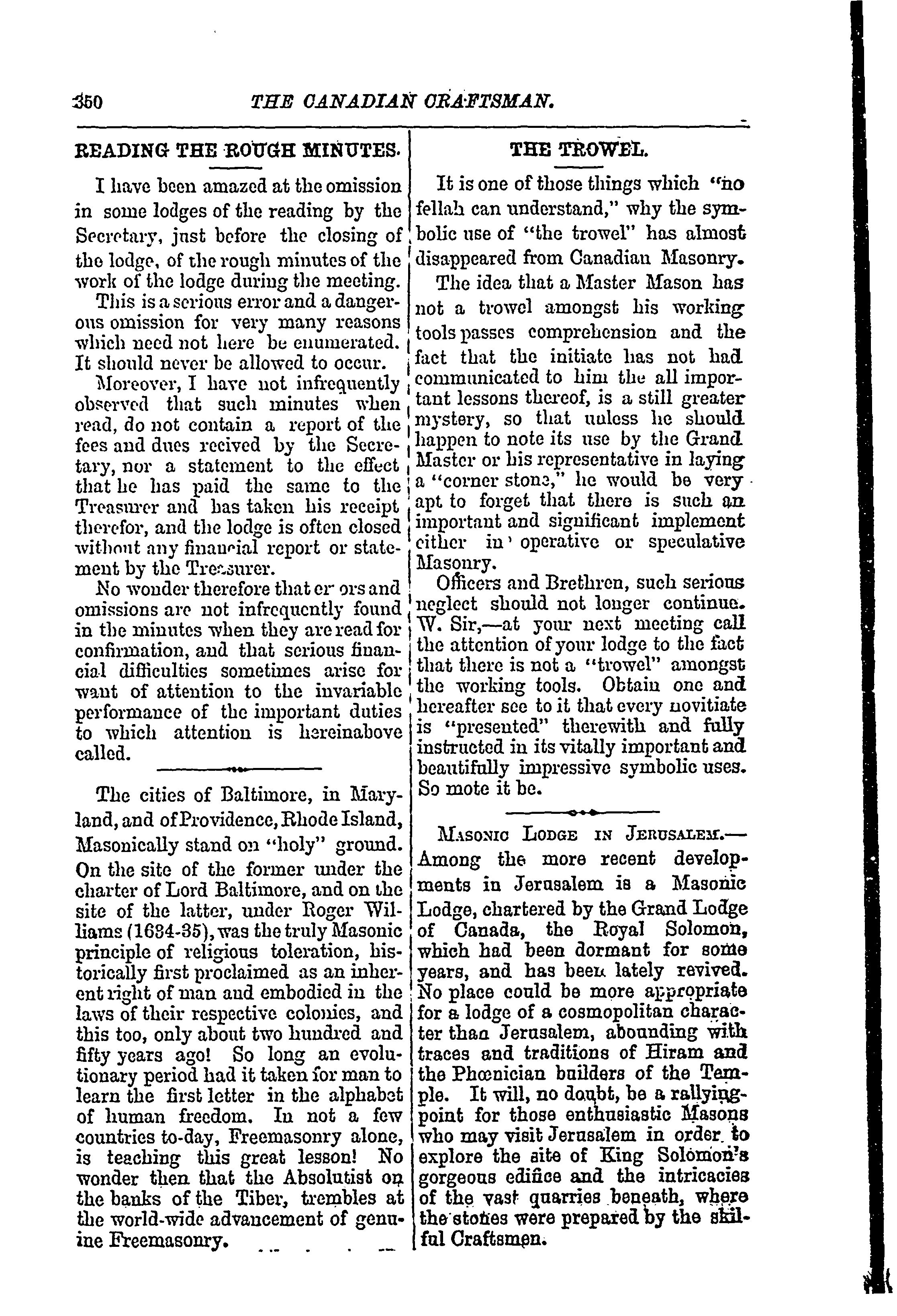 - The Canadian craftsman and Masonic record : Vol. 21, no. 11 (Nov. 15, 1887)