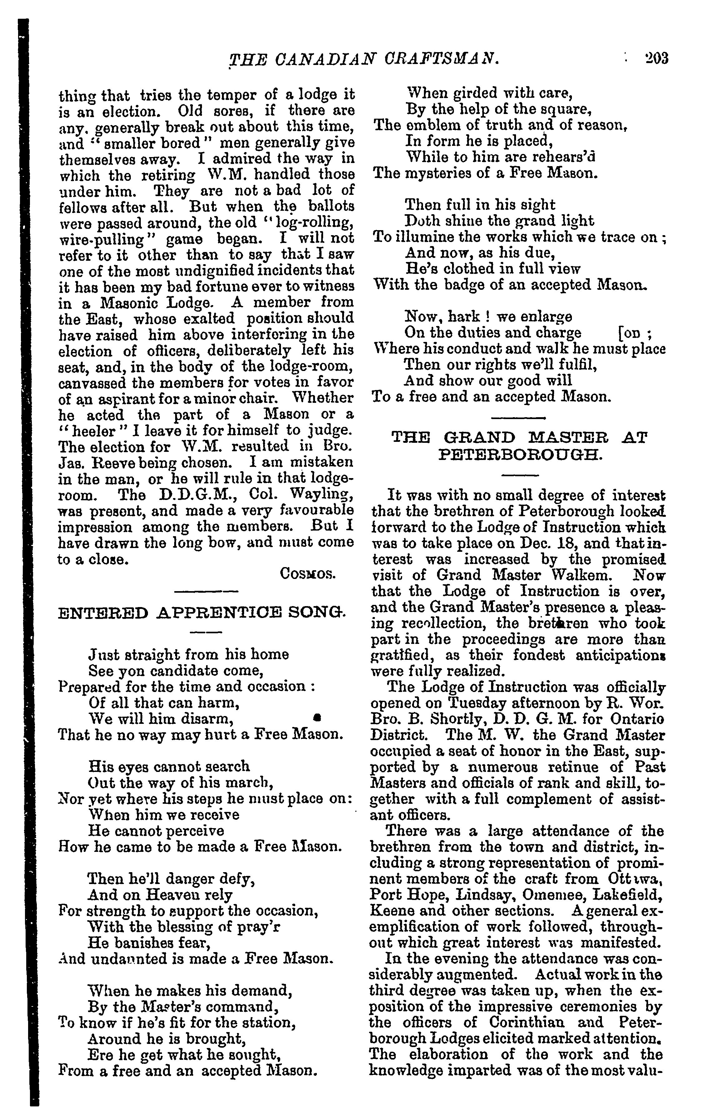 - The Canadian craftsman and Masonic record : Vol. 23, no. 7 (Jan. 1889)