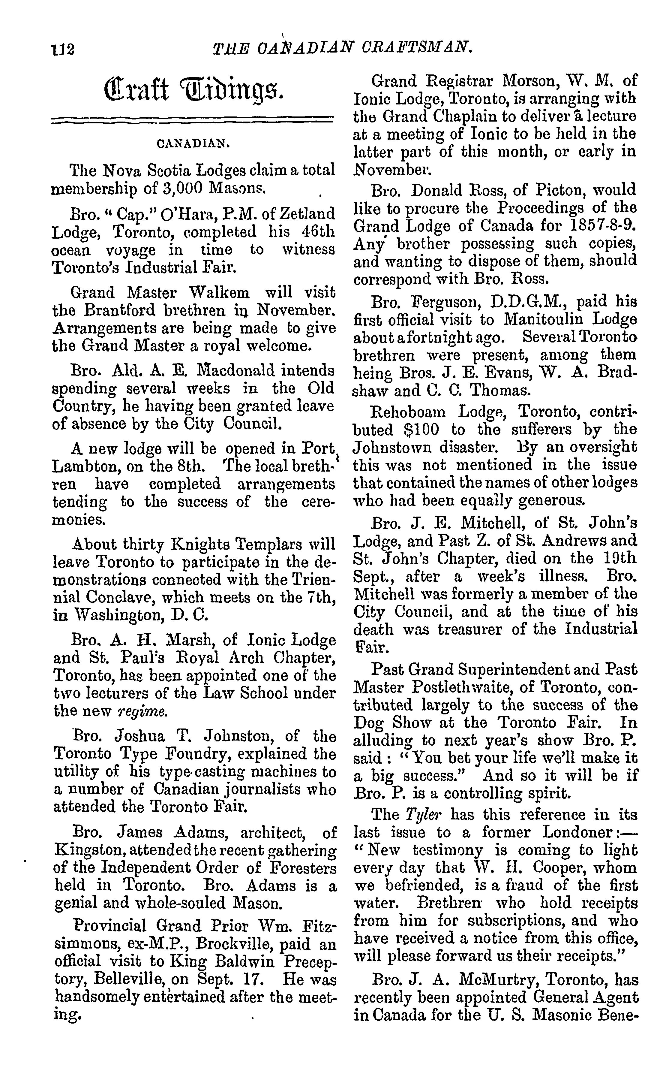 - The Canadian craftsman and Masonic record : Vol. 24, no. 4 (Oct. 1889)