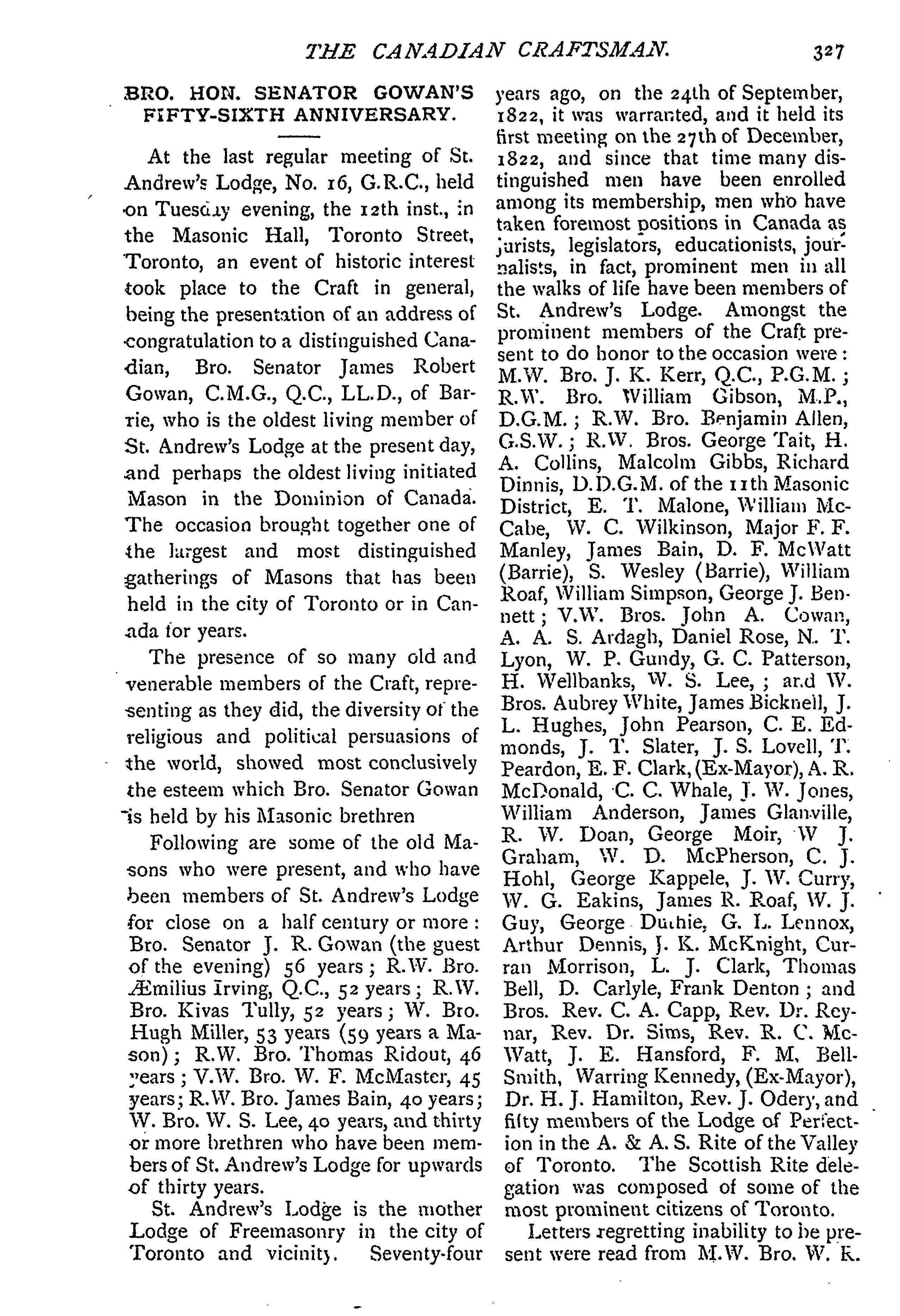 - The Canadian craftsman and Masonic record : Vol. 30, no. 11 (May 1896)