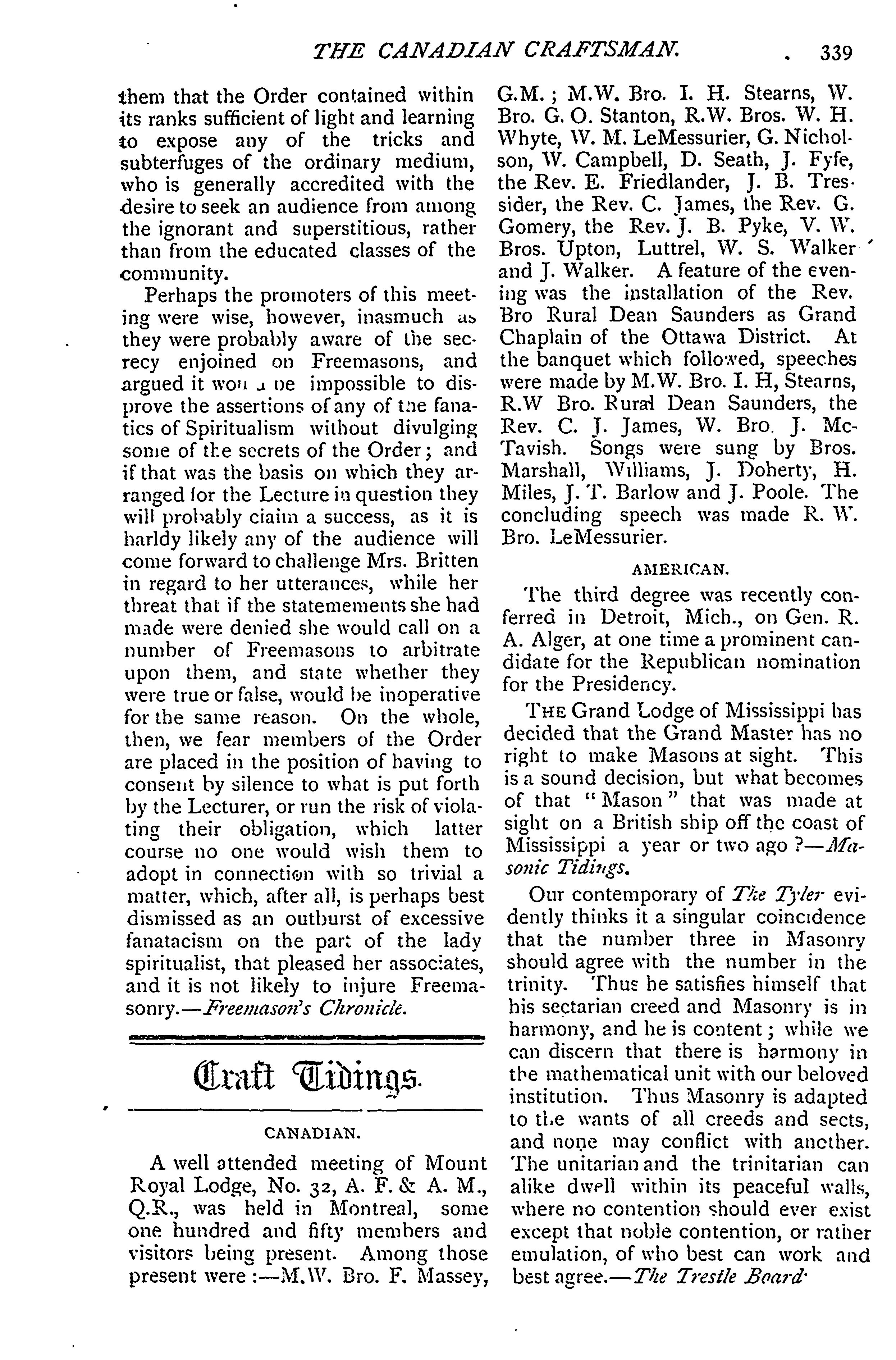 - The Canadian craftsman and Masonic record : Vol. 30, no. 11 (May 1896)