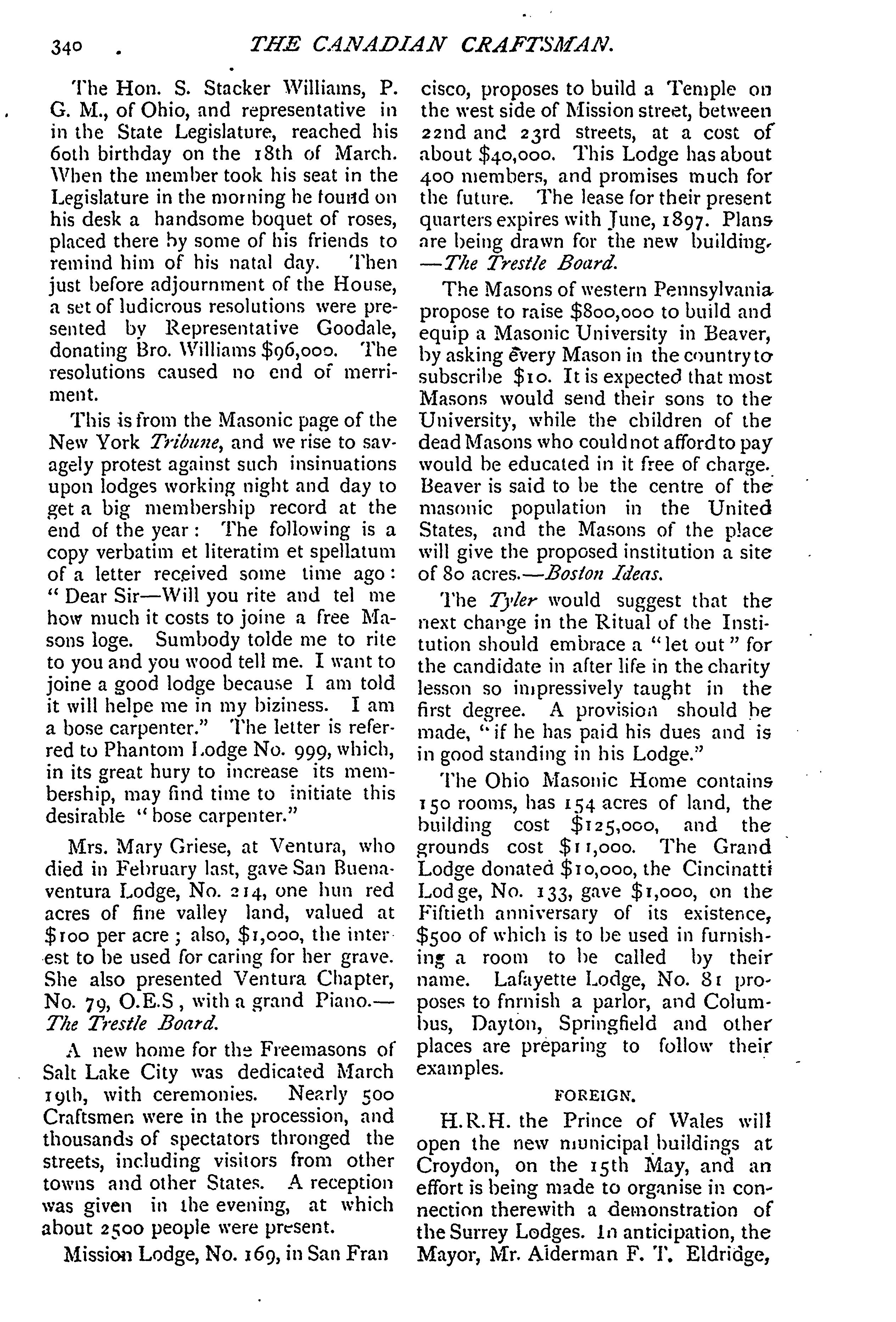 The Canadian craftsman and Masonic record : Vol. 30, no. 11 (May 1896)