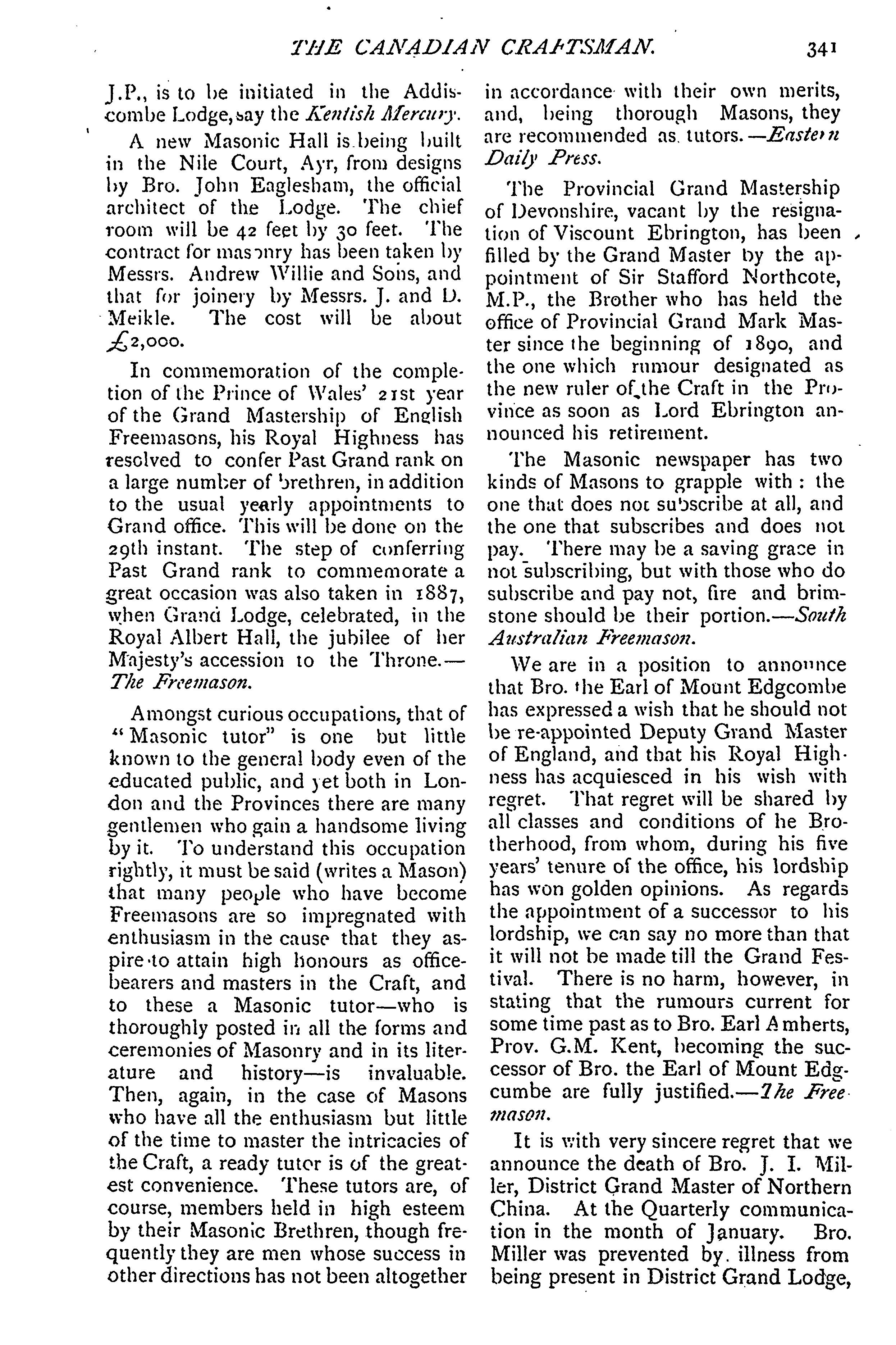 - The Canadian craftsman and Masonic record : Vol. 30, no. 11 (May 1896)