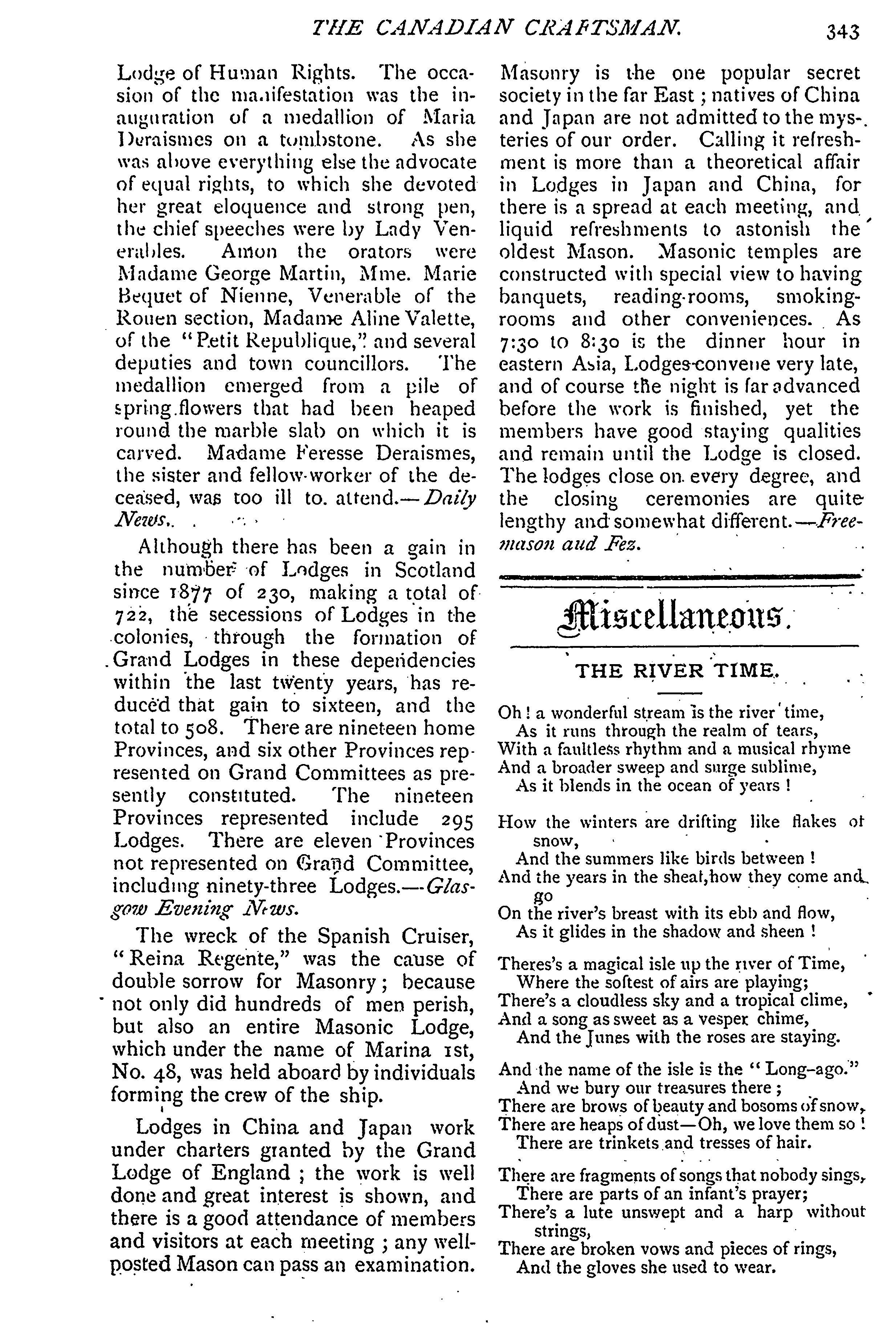 - The Canadian craftsman and Masonic record : Vol. 30, no. 11 (May 1896)