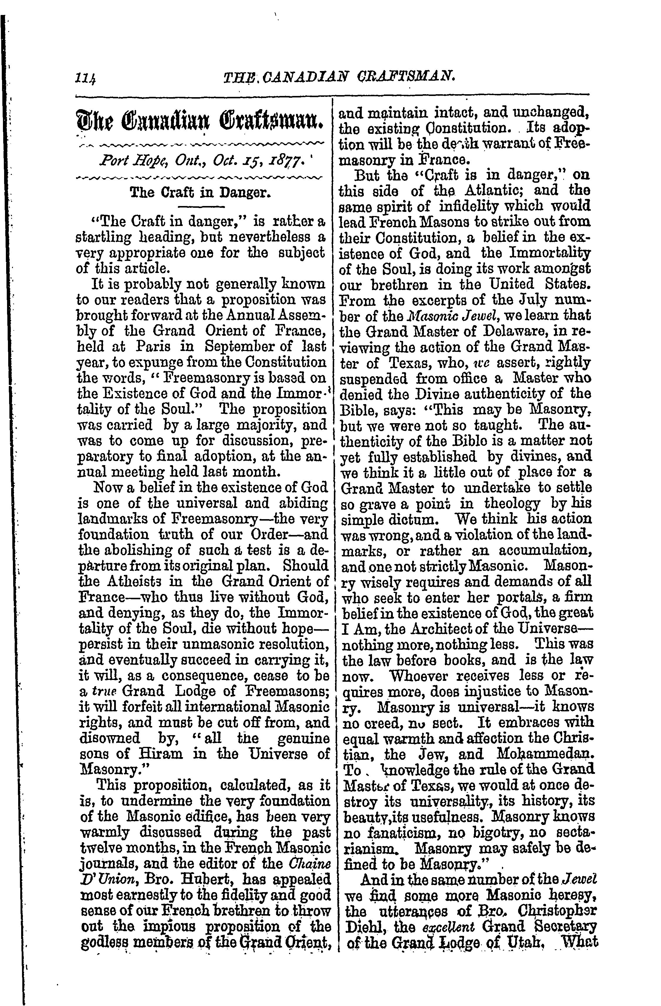 The Canadian craftsman and Masonic record : Vol. 11, no. 10 (Oct. 15, 1877)