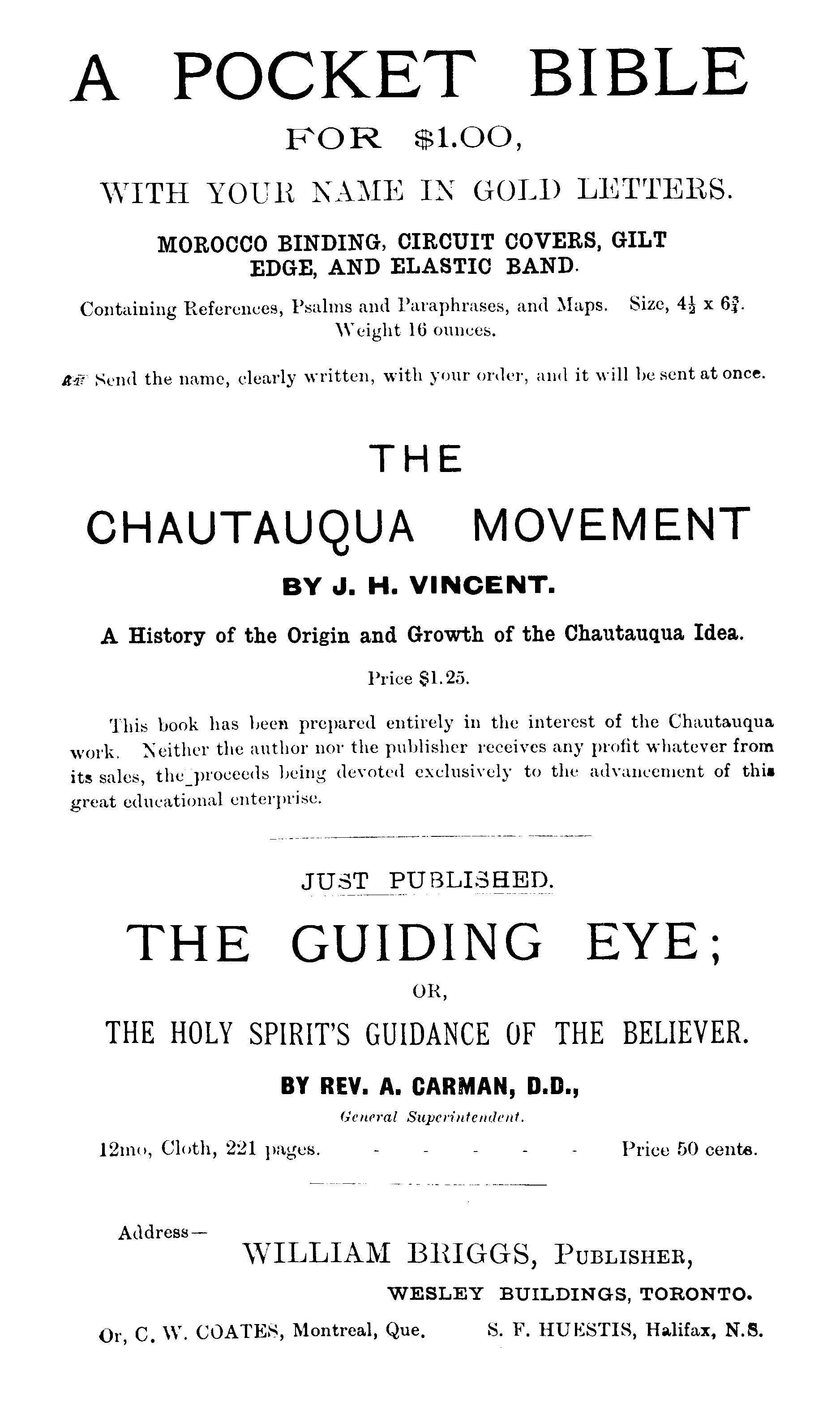 Toronto :, W. Briggs, [1890]